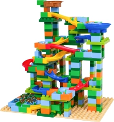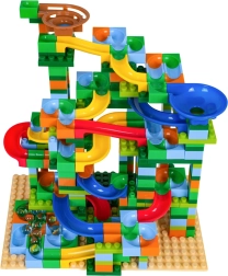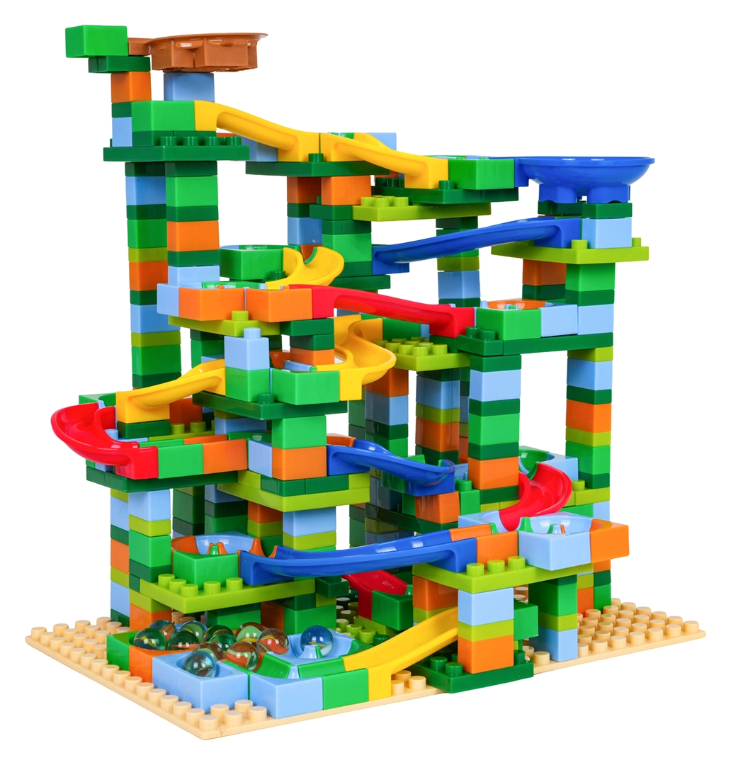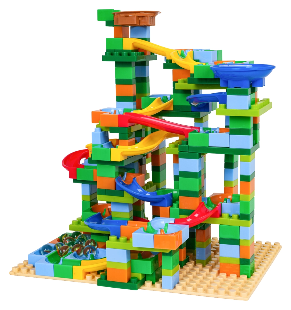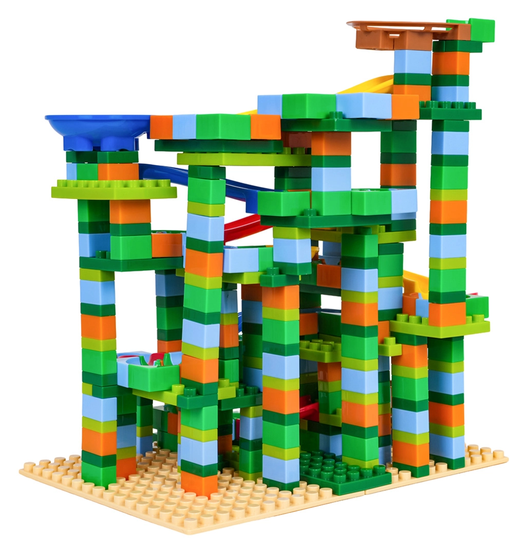 Συναρμολογήστε τη δική σας πολύχρωμη πίστα μπίλιας και παρακολουθήστε τις μπίλιες να περνούν από στροφές, χοάνες και κατηφόρες. Με το πλούσιο σετ των 402 στοιχείων θα δημιουργήσετε αμέτρητες παραλλαγές και τα παιδιά θα εξασκούν φυσικά τον συντονισμό χεριού–ματιού και τη λογική σκέψη.