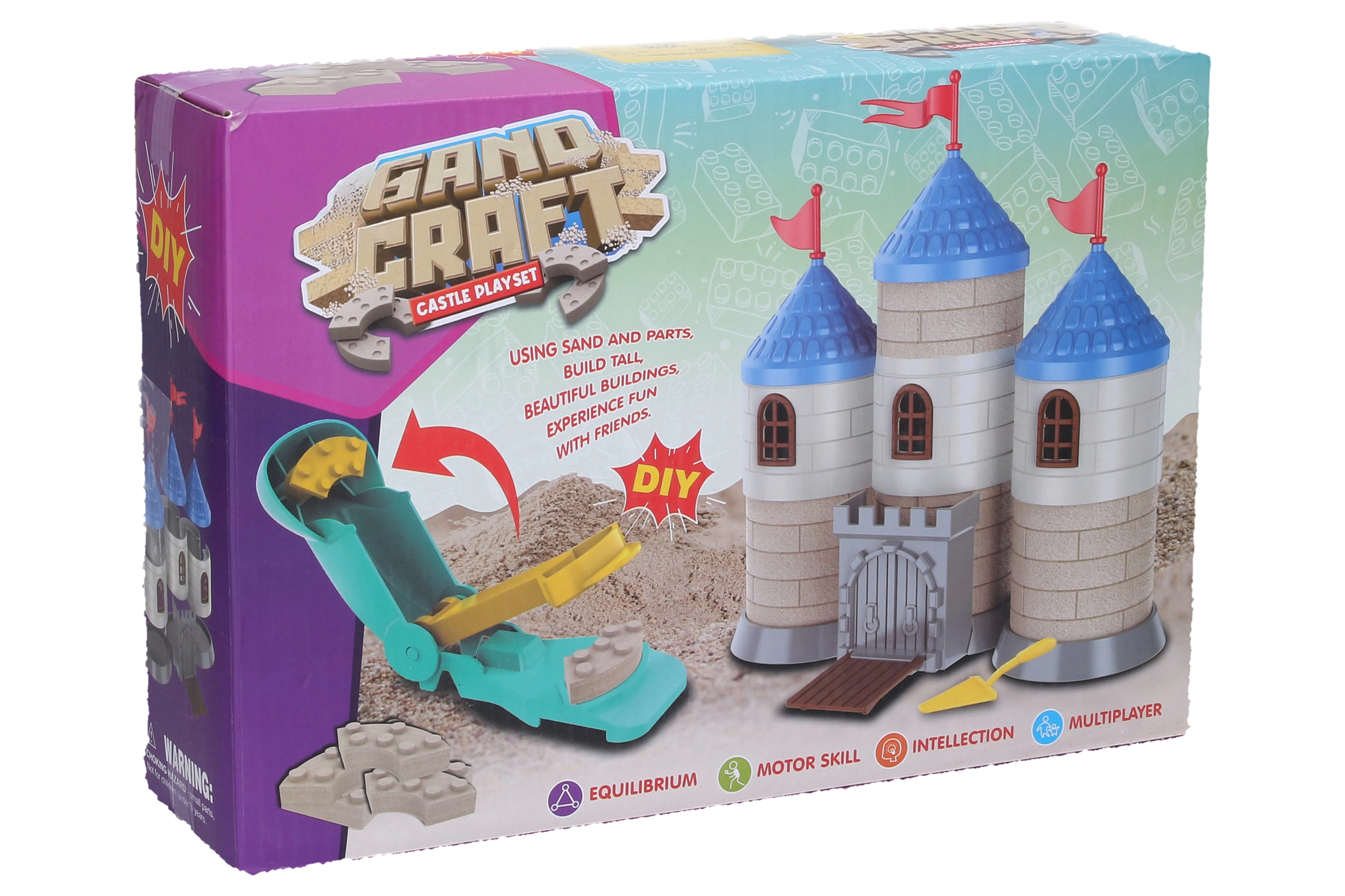 - 750 g κινητικής άμμου, καλούπι για τουβλάκια, εξαρτήματα για την κατασκευή κάστρου, εργαλεία, εικονικές οδηγίες