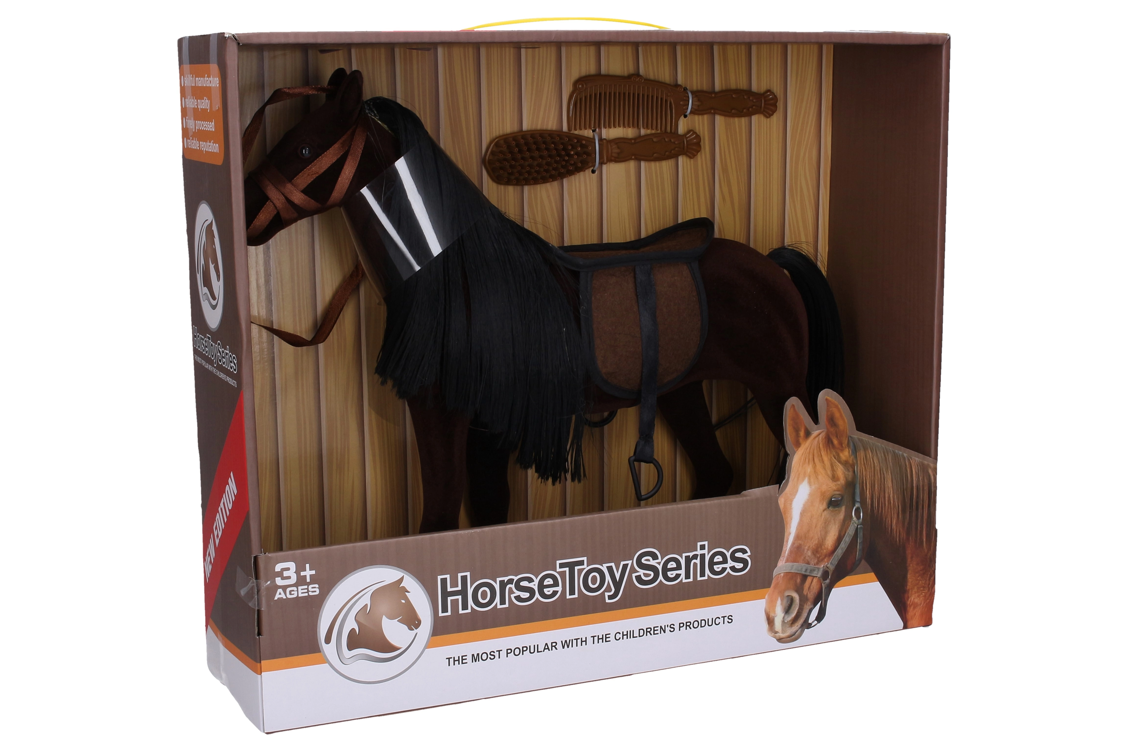 Χαριτωμένο λούτρινο άλογο σε σκούρα απόχρωση, μήκους 35 cm, που θα χαρίσει χαρά σε κάθε μικρό λάτρη των αλόγων. Το πακέτο περιλαμβάνει σέλα και δύο χτένες για εύκολο χτένισμα και περιποίηση. Ιδανικό παιχνίδι για την ανάπτυξη της φαντασίας και της λεπτής κινητικότητας. Απαλό υλικό, ρεαλιστικές λεπτομέρειες και πρακτικά αξεσουάρ προσφέρουν άφθονη διασκέδαση στο σπίτι και στις εκδρομές.