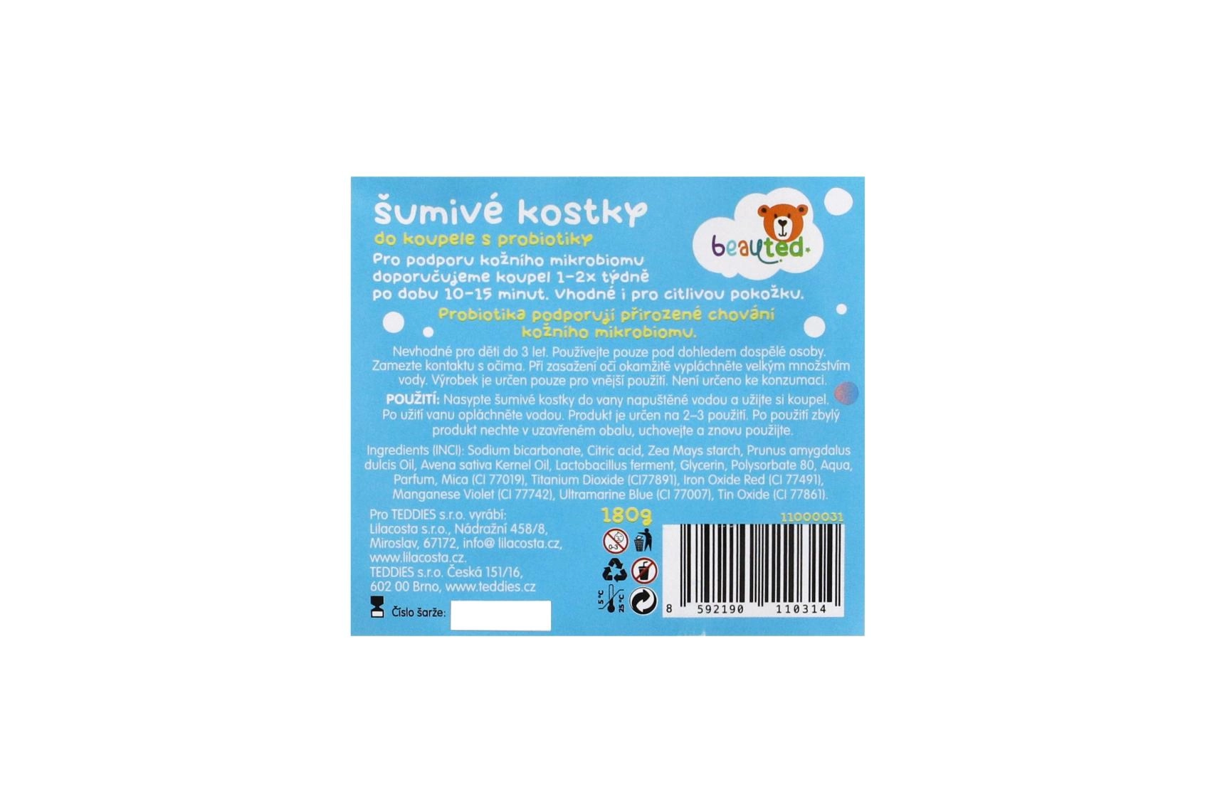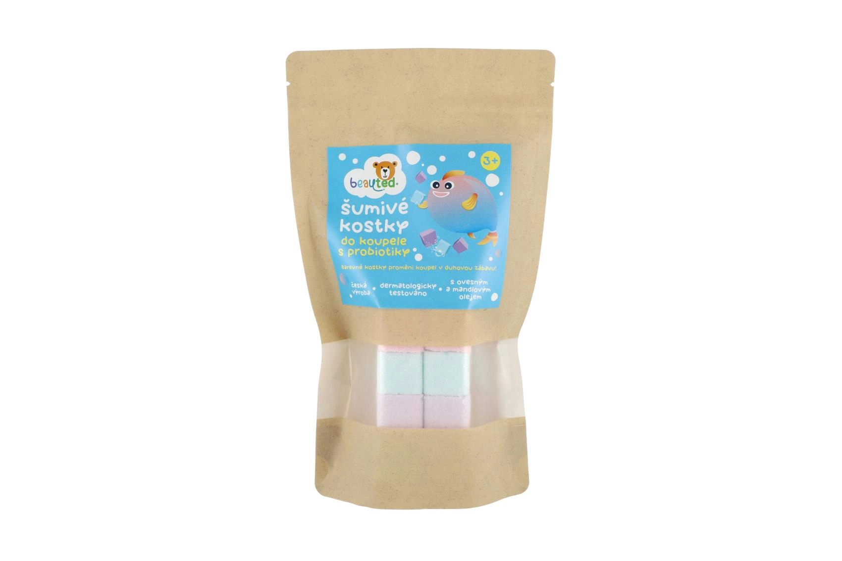 Μετατρέψτε το μπάνιο σε ένα πολύχρωμο ταξίδι. Οι αφρίζοντες κύβοι μπάνιου με προβιοτικά προσφέρουν διασκέδαση και απαλή φροντίδα για το παιδικό δέρμα. Περιέχουν προβιοτικά για υποστήριξη της φυσικής άμυνας του δέρματος, είναι εμπλουτισμένοι με μέταλλα από θαλασσινό αλάτι, εκχύλισμα βρώμης και αμυγδαλέλαιο. Δερματολογικά ελεγμένο, απαλό για τα παιδιά. Το πρακτικό επανακλειόμενο σακουλάκι διατηρεί τη φρεσκάδα και διευκολύνει τη δοσολογία.