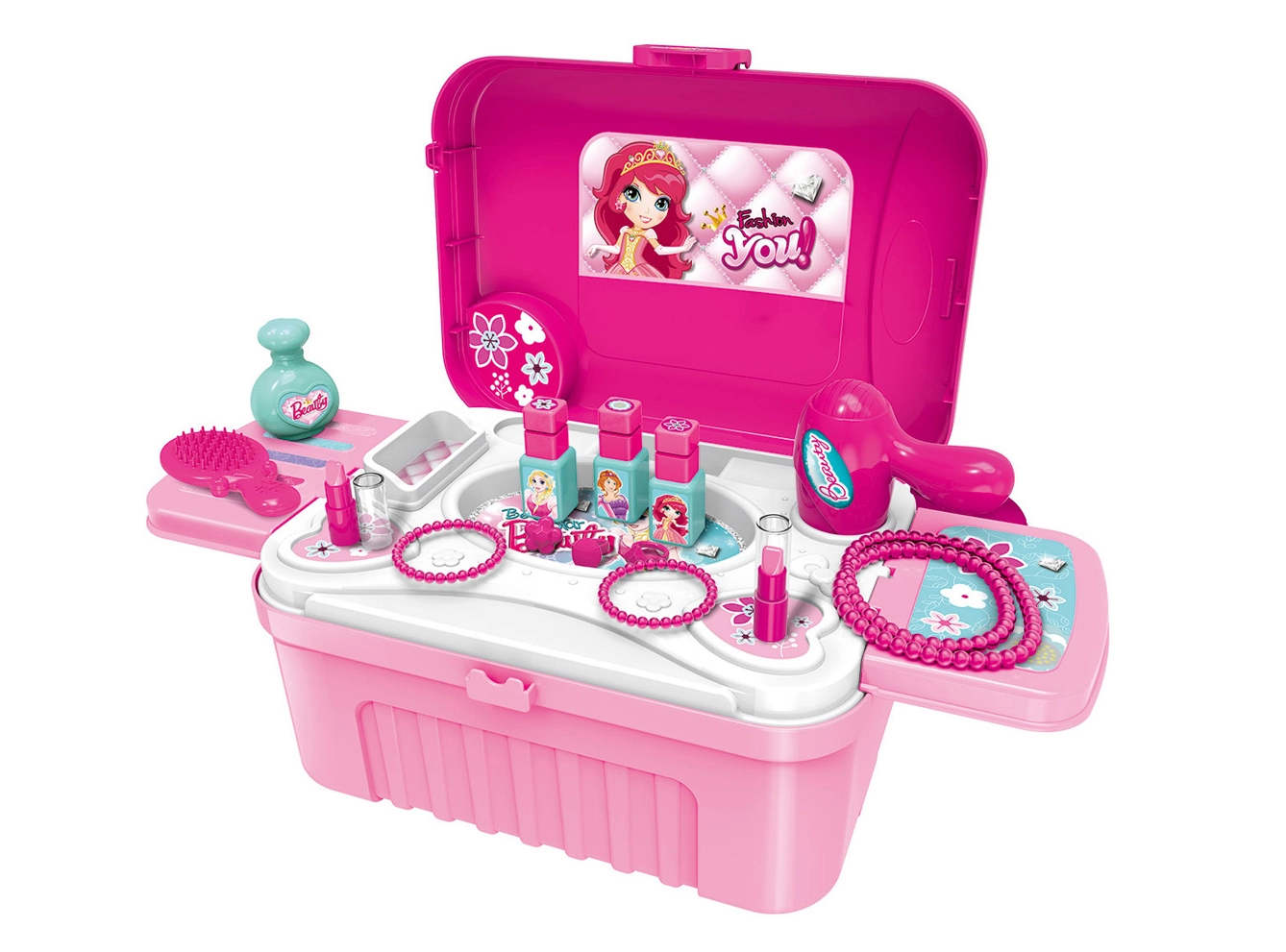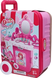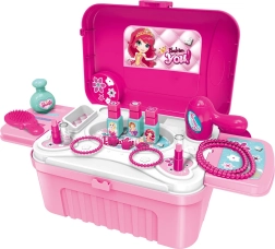 Αυτό το ροζ σετ καλλυντικών είναι ιδανικό για μικρές κοκέτες που αγαπούν το φανταστικό παιχνίδι. Η πρακτική κασετίνα με ροδάκια και τηλεσκοπική λαβή μετατρέπεται εύκολα σε σταθερό τραπεζάκι καλλυντικών με ενσωματωμένο καθρέφτη. Παράλληλα προσφέρει άφθονο αποθηκευτικό χώρο για όλα τα αξεσουάρ.