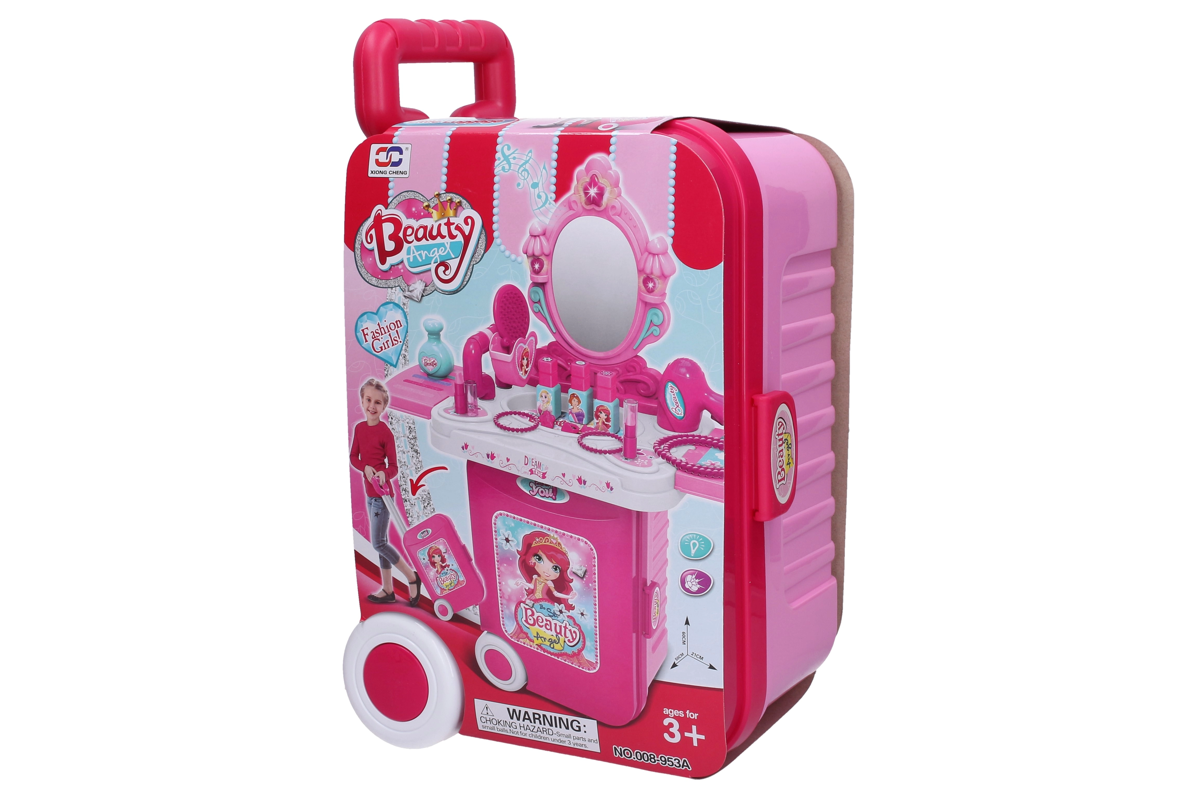 Ευκολομετακίνητο σετ για μικρές στιλίστριες – τραβήξτε τη λαβή, κυλήστε στα ροδάκια και παίξτε παντού.