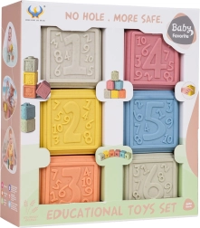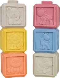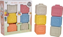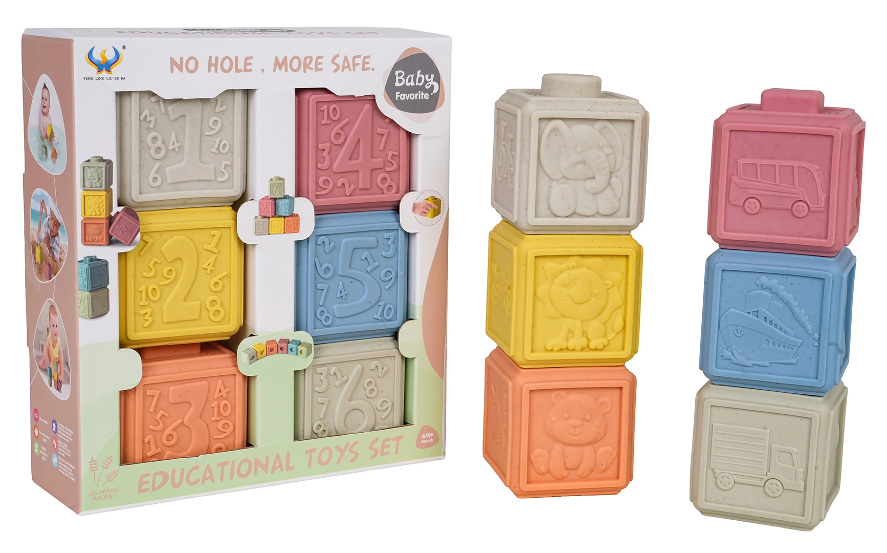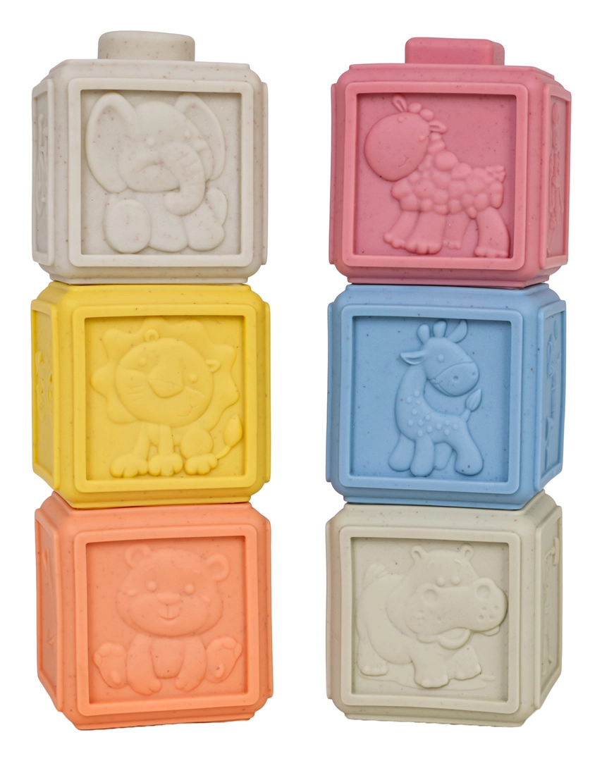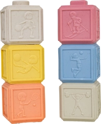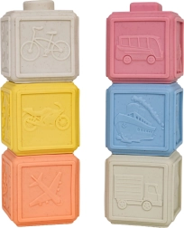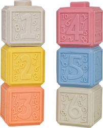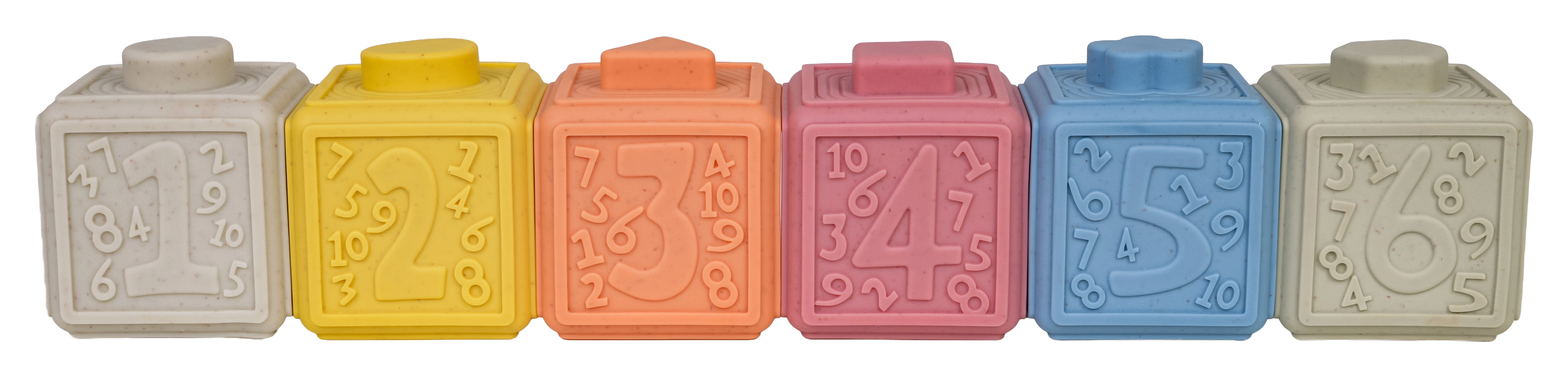 Οικολογικό σετ 6 μαλακών κύβων σε παστέλ χρώματα που προσφέρει ατελείωτες δυνατότητες παιχνιδιού και μάθησης. Κάθε κύβος έχει διαφορετική επιφάνεια και μοτίβα που υποστηρίζουν τη λεπτή κινητικότητα, τον συντονισμό χεριού–ματιού και την ανάπτυξη των αισθήσεων. Χάρη στο ασφαλές, μαλακό υλικό είναι ιδανικοί για νήπια και μπορούν επίσης να χρησιμοποιηθούν ως μασητικά κατά την οδοντοφυΐα.
