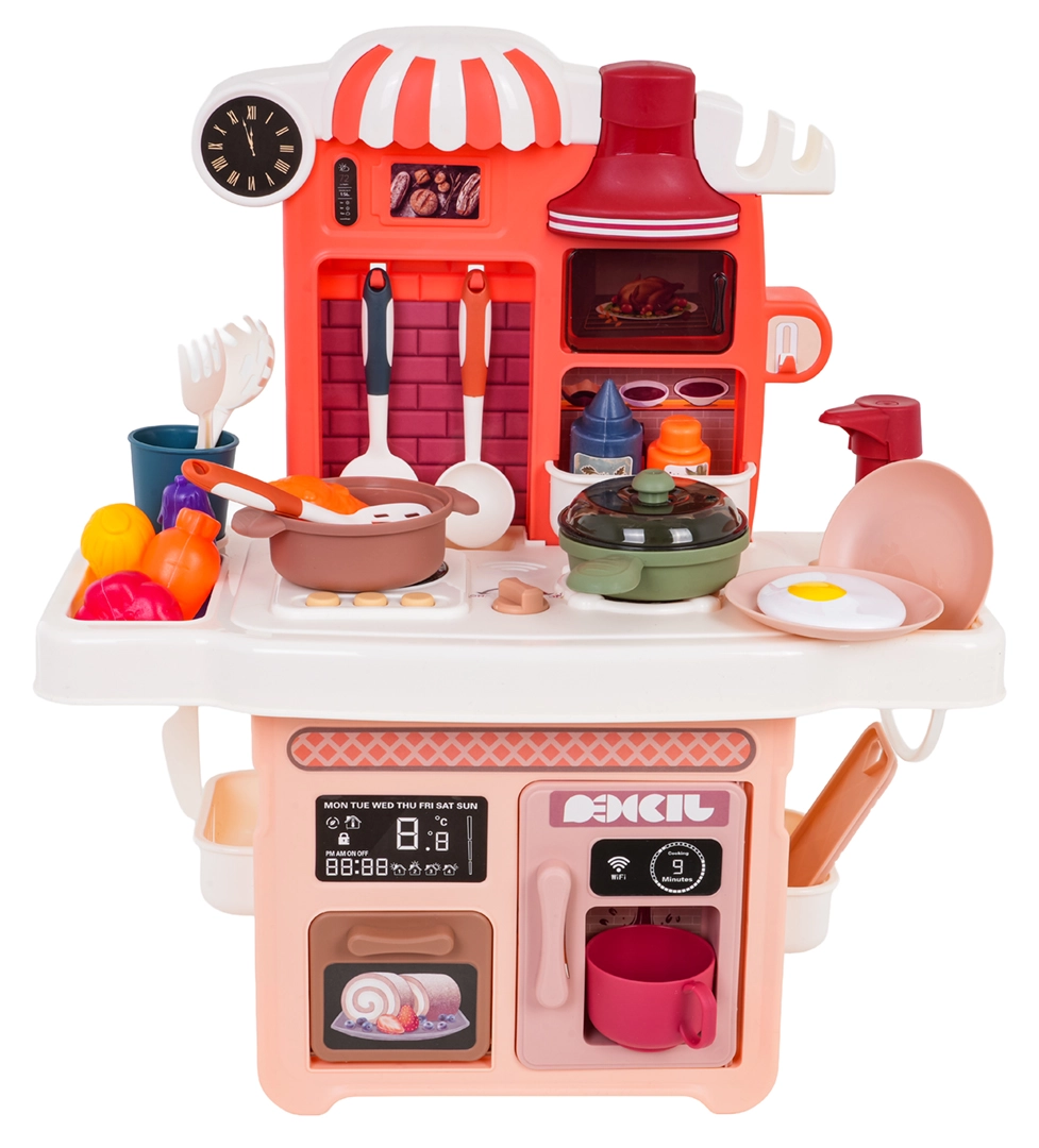 Οι φωτιζόμενοι καυστήρες, οι ήχοι μαγειρέματος και τηγανίσματος και η αναπαραγωγή τραγουδιών και ριμών δημιουργούν μια αυθεντική ατμόσφαιρα κουζίνας που διασκεδάζει και εκπαιδεύει τα παιδιά.