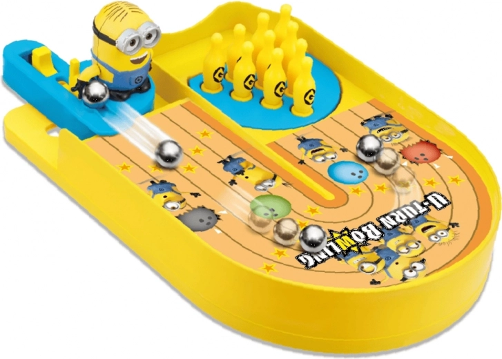- 1 ταμπλό παιχνιδιού (περ. 19 × 13 cm), 1 φιγούρα Minion (περ. 3 cm), 10 κορίνες, 1 μπάλα μπόουλινγκ, οδηγίες (στα αγγλικά)