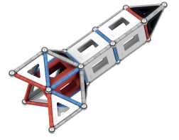 Ισχυροί μαγνήτες στις ράβδους και μεταλλικές μπίλιες εξασφαλίζουν στιβαρές συνδέσεις. Τα παιδιά συναρμολογούν εύκολα πύραυλο, σεληνιακή μονάδα και γέφυρες χωρίς περίπλοκα εργαλεία.