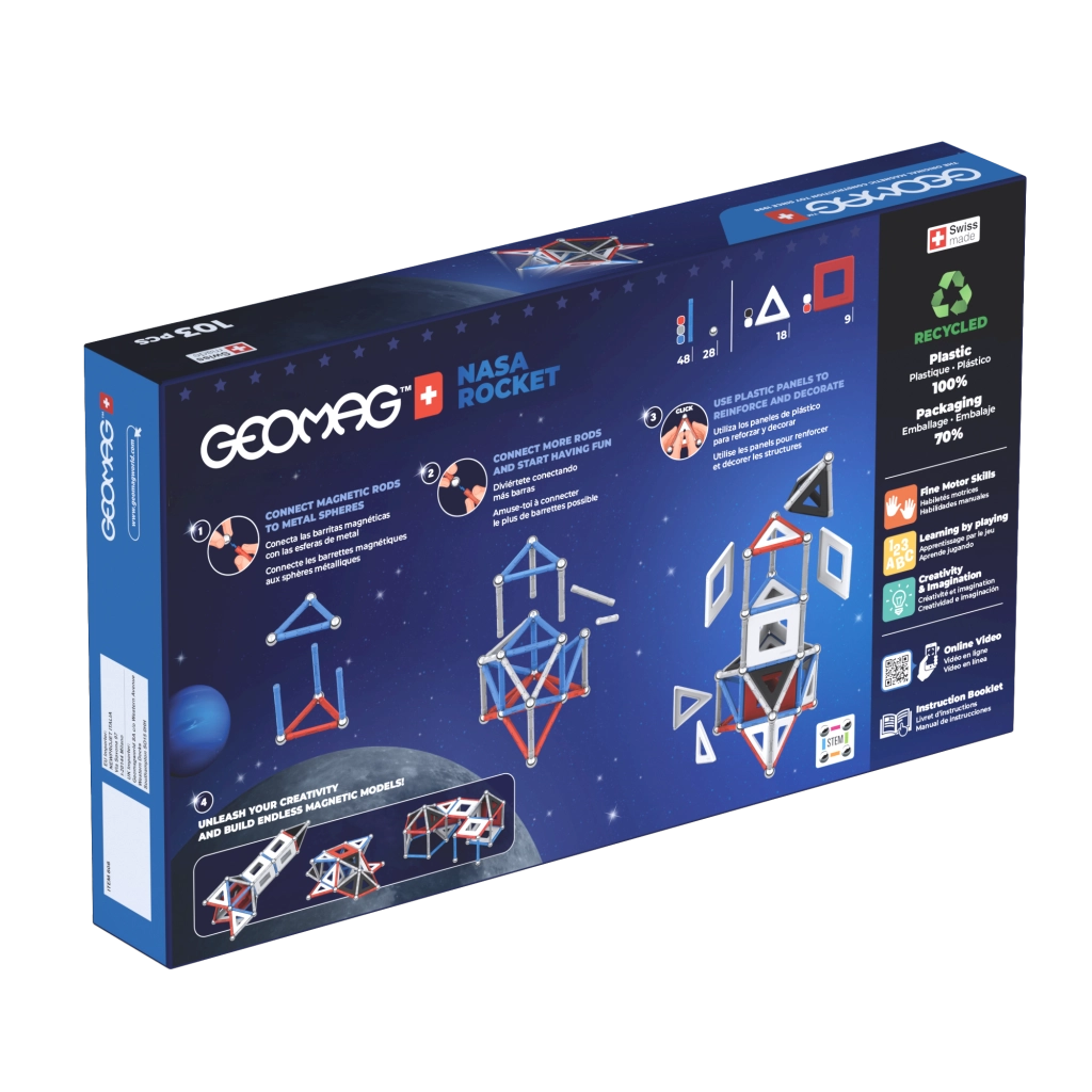 Αυτή η συλλεκτική έκδοση του μαγνητικού σετ GEOMAG δημιουργήθηκε σε συνεργασία με τη NASA και ενθουσιάζει μικρούς και μεγάλους φίλους του διαστήματος. Χάρη στους ισχυρούς μαγνήτες, τα ελαφριά πλαίσια και τις μεταλλικές συνδέσεις, συναρμολογείτε εύκολα πύραυλο, σεληνιακή μονάδα και φανταστικές κατασκευές. Τα ανθεκτικά κομμάτια και οι έξυπνες συνδέσεις εξασφαλίζουν σταθερότητα μοντέλων και ομαλό παιχνίδι.