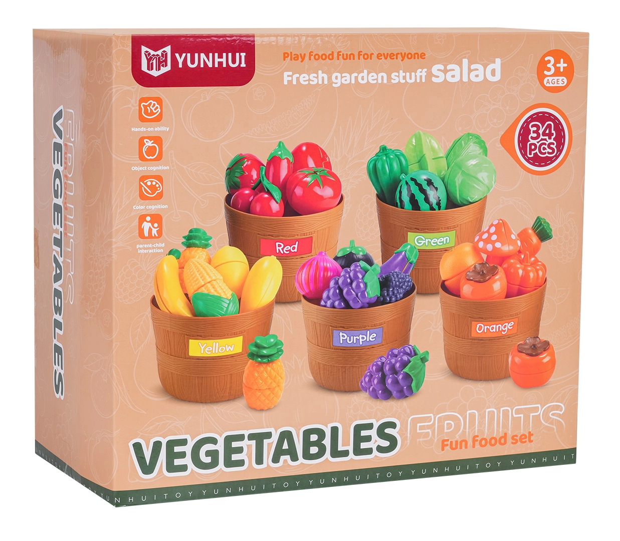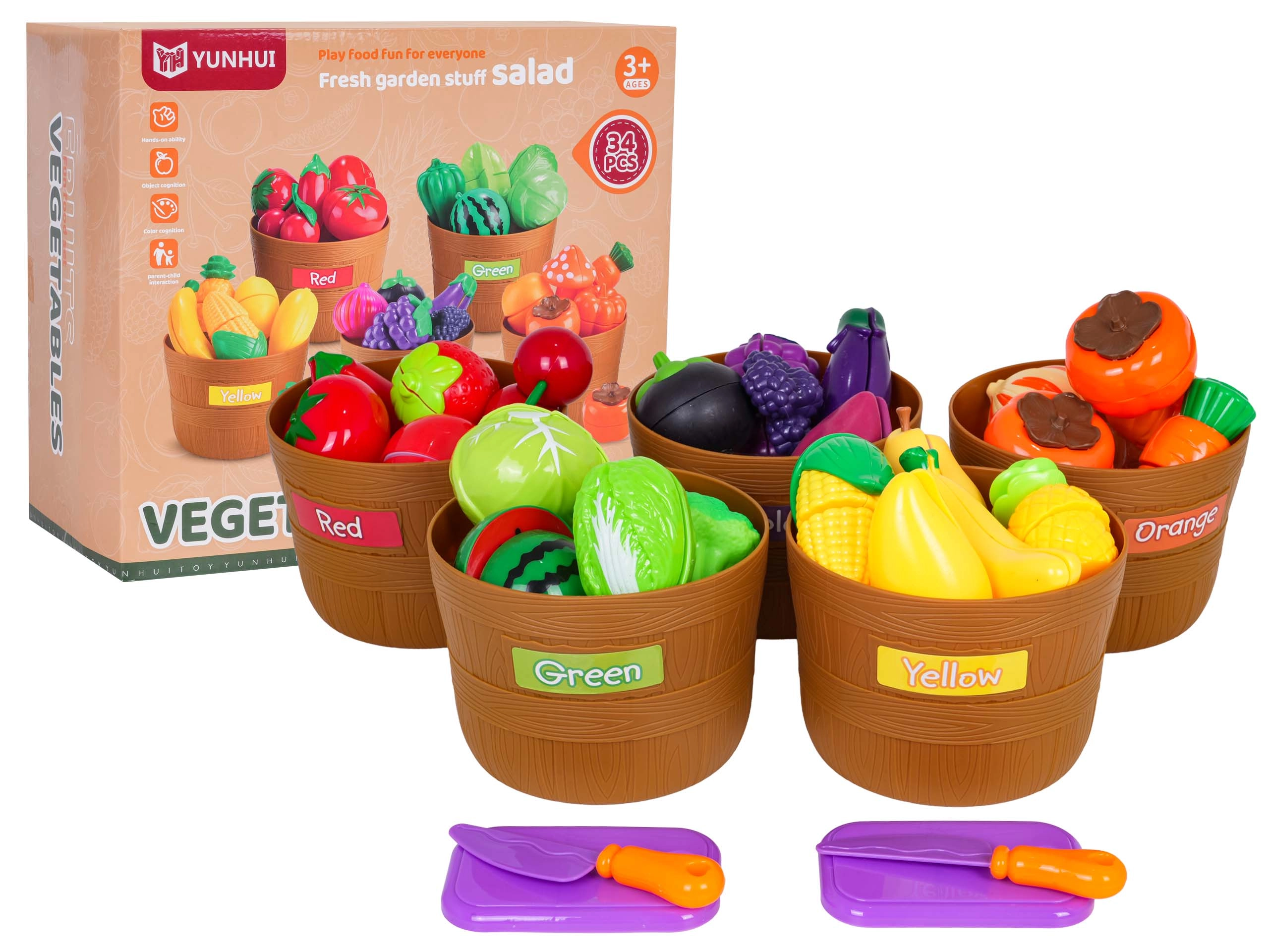 Ανακαλύψτε το διασκεδαστικό διδακτικό σετ φρούτων και λαχανικών για παιδιά από 3 ετών. Το σετ περιλαμβάνει 34 κομμάτια, συμπεριλαμβανομένων φρούτων και λαχανικών με αυτοκόλλητο βέλκρο για «κόψιμο», 5 καλαθάκια ταξινόμησης κατά χρώμα και 2 σανίδες κοπής με μαχαίρια. Ποιοτικό πλαστικό σε ζωντανά χρώματα που αναπτύσσει τη λεπτή κινητικότητα, μαθαίνει τα χρώματα και ενισχύει το δημιουργικό παιχνίδι κουζίνας.
