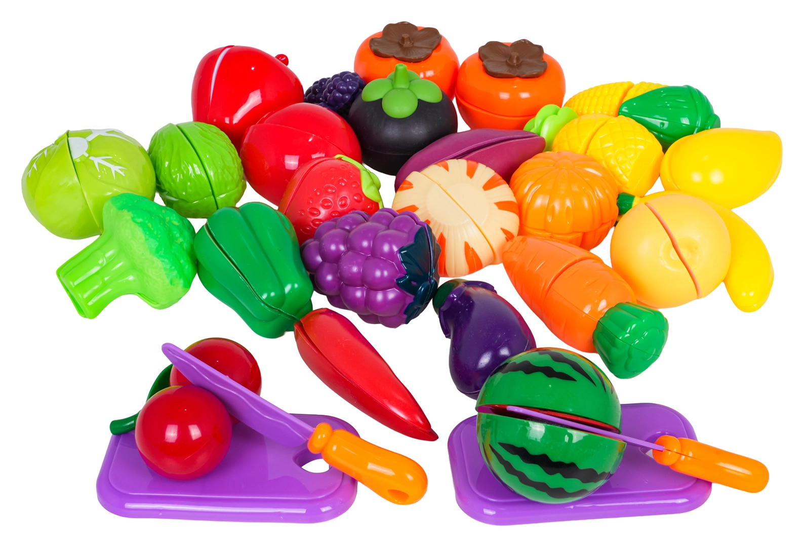 - Ρεαλιστικά τεμάχια: μπανάνα, λεμόνι, καλαμπόκι, ανανάς, ντομάτα, φράουλα, καρότο, μελιτζάνα, λάχανο/σαλάτα, πιπεριά και άλλα