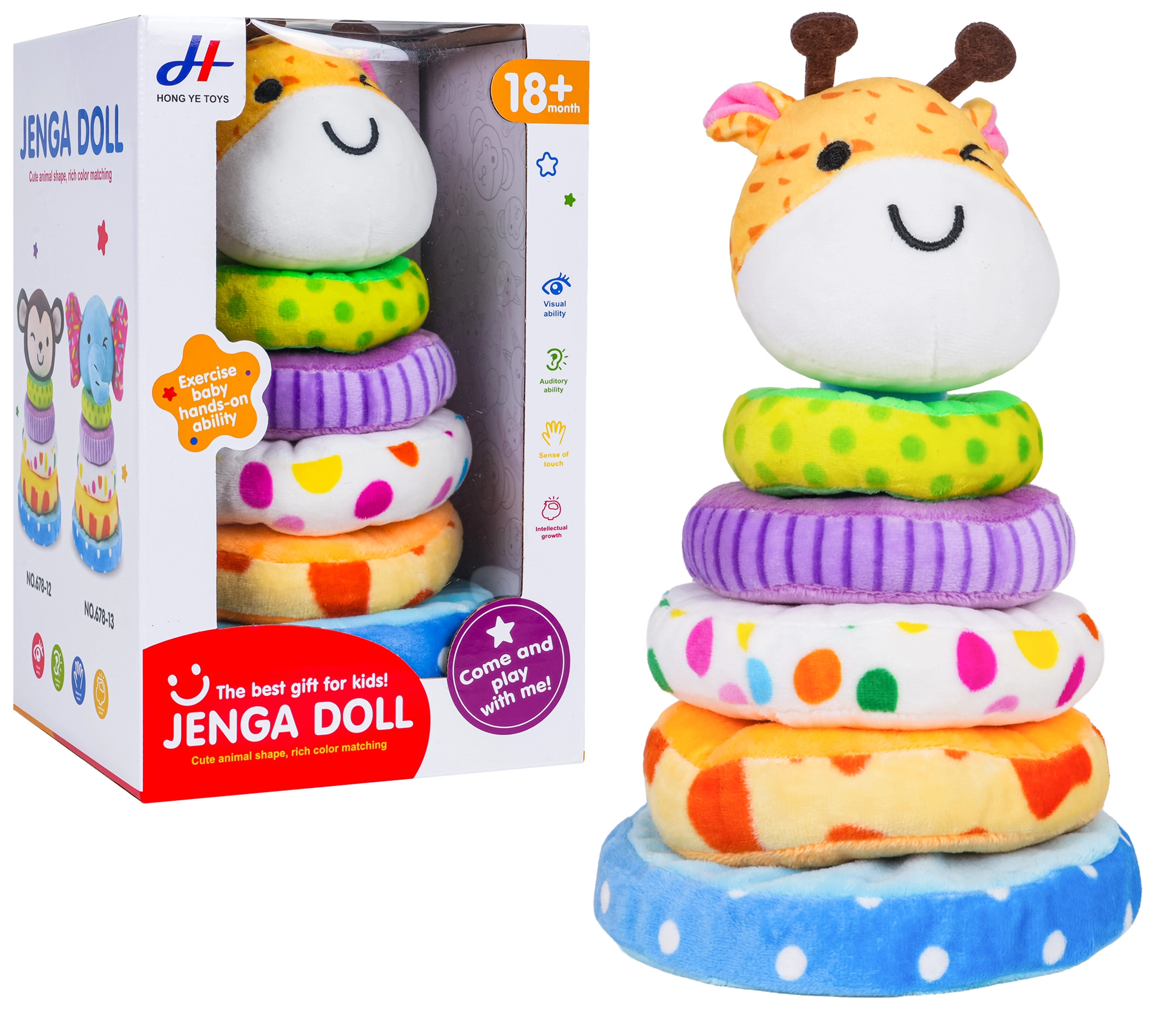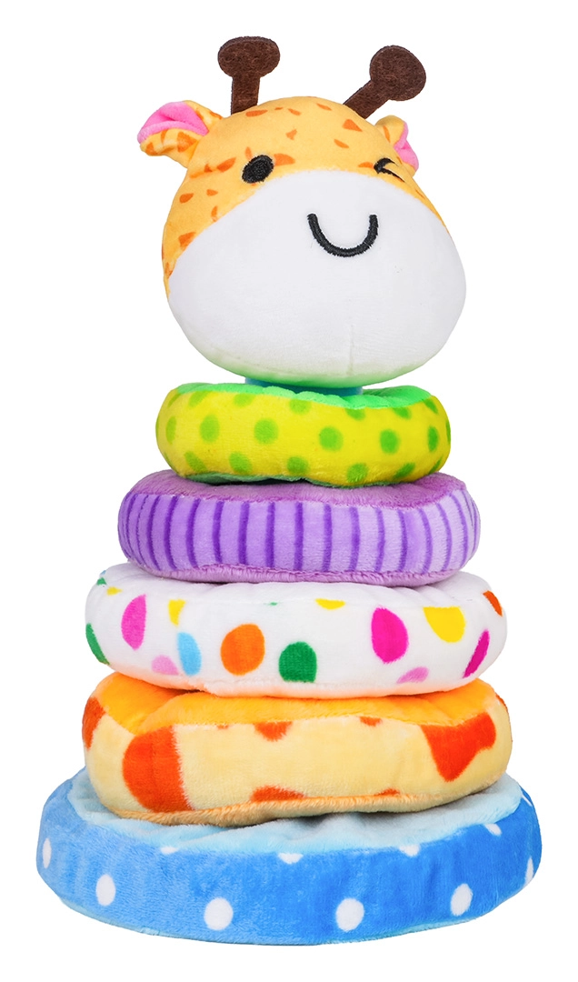 Η μαλακή στοίβαξη πυραμίδας καμηλοπάρδαλη προσφέρει στα παιδιά έναν διασκεδαστικό και ασφαλή τρόπο μάθησης. Το σετ αποτελείται από σταθερή βάση, τέσσερα απαλά δαχτυλίδια διαφορετικού μεγέθους και κεφαλάκι καμηλοπάρδαλης με σφυρίχτρα. Τα πολύχρωμα μοτίβα και το ευχάριστο βελούδινο ύφασμα ενισχύουν την αισθητηριακή ανάπτυξη, ενώ το στοίβαγμα των δαχτυλιδιών καλλιεργεί τη λογική και την υπομονή.