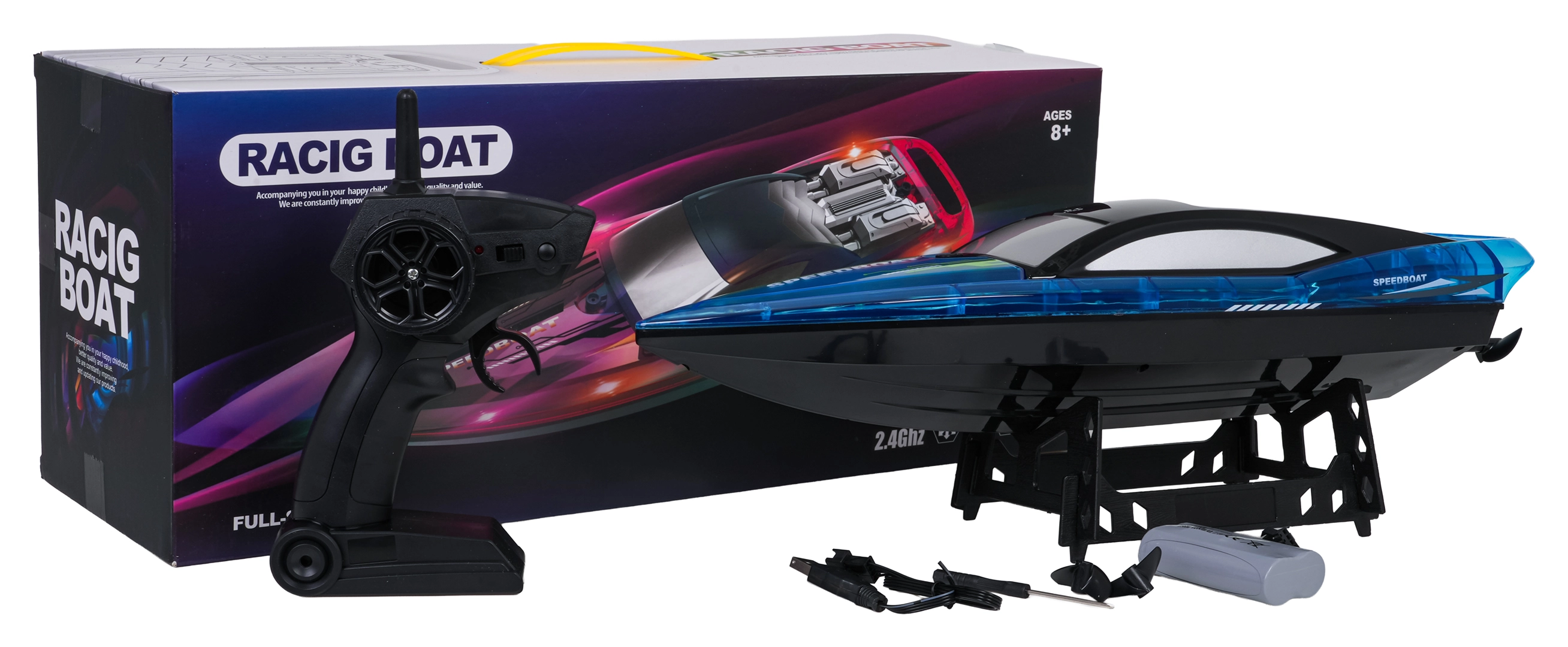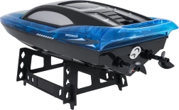 Αυτό το μπλε RC μηχανοκίνητο σκάφος έχει σχεδιαστεί για γρήγορη και ακριβή κίνηση στην επιφάνεια του νερού. Ποιοτικά υλικά και αεροδυναμική γάστρα εξασφαλίζουν εξαιρετικά οδηγικά χαρακτηριστικά, ενώ τα LED φώτα αυξάνουν την ορατότητα και προσδίδουν ελκυστική εμφάνιση σε βραδινές διαδρομές. Ο έλεγχος 2,4 GHz προσφέρει αξιόπιστη εμβέλεια χωρίς παρεμβολές, ώστε να μπορείτε να αγωνίζεστε με πολλά σκάφη ταυτόχρονα.