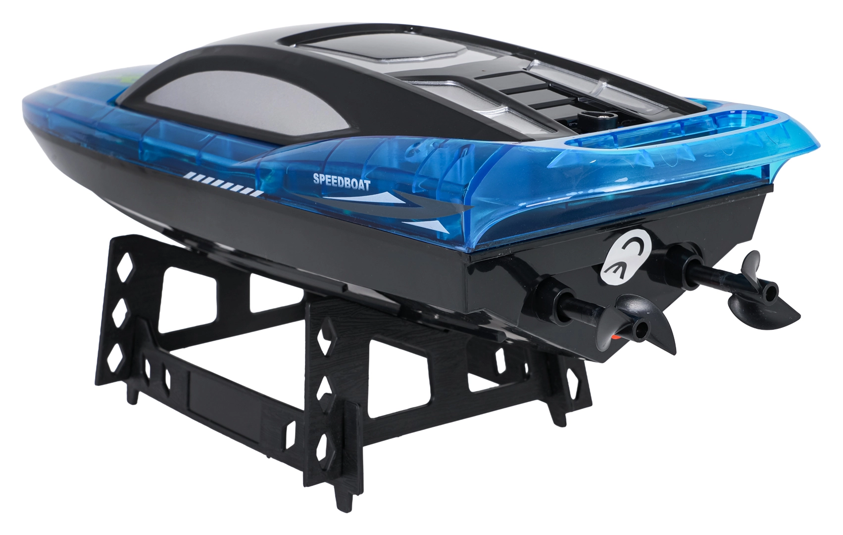 Το ζευγάρι πίσω προπελών και τα πηδάλια κατεύθυνσης προσφέρουν ζωηρή επιτάχυνση και ακριβείς στροφές εμπρός και πίσω – ιδανικό για αγώνες σε πισίνα ή λίμνη.