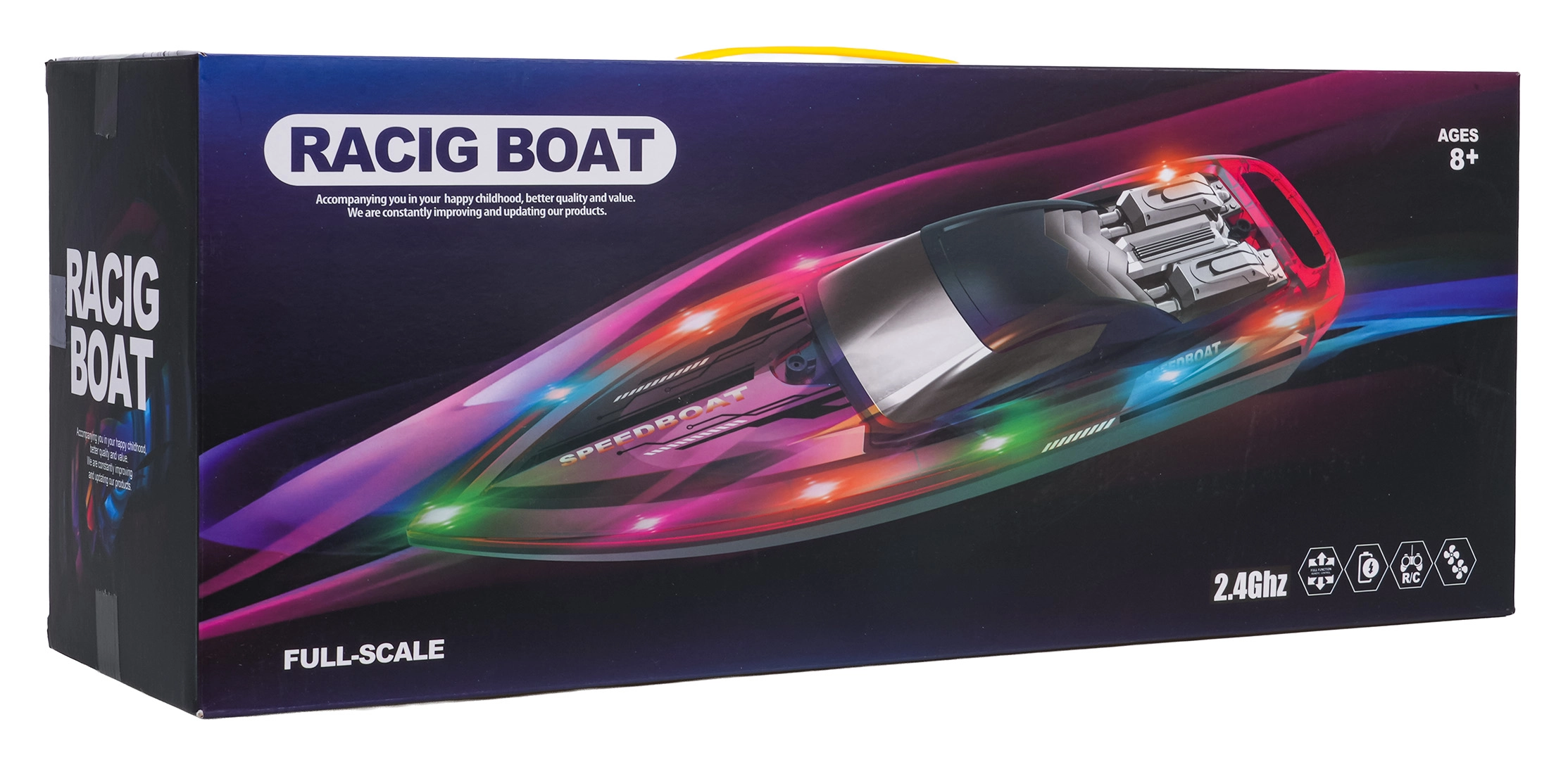 Απολαύστε την αδρεναλίνη στο νερό με αυτό το γρήγορο RC αγωνιστικό σκάφος για παιδιά από 8 ετών. Χάρη στον έλεγχο 2,4 GHz, τον LED φωτισμό και τον αισθητήρα ασφαλούς εκκίνησης στο νερό, η οδήγηση είναι διασκεδαστική και ασφαλής. Η ανθεκτική κατασκευή και ο λεπτός, αεροδυναμικός σχεδιασμός εξασφαλίζουν σταθερότητα και υψηλή ταχύτητα. Στη συσκευασία περιλαμβάνονται επαναφορτιζόμενη μπαταρία, καλώδιο USB, εφεδρικές προπέλες και πρακτική βάση.