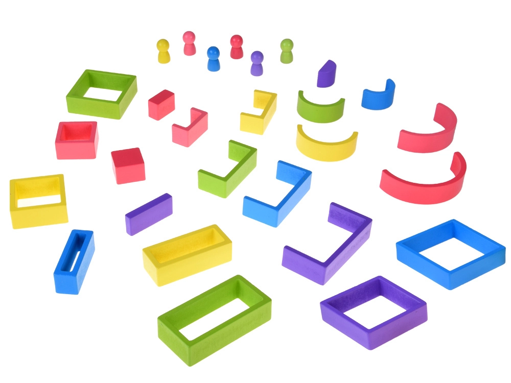 Τόξα, πλαίσια, γέφυρες και άλλα σχήματα μπορούν να στοιβάζονται, να κουμπώνουν και να ισορροπούν. Τα παιδιά εξασκούν τη λεπτή κινητικότητα και η μάθηση γίνεται φυσικά μέσα από το παιχνίδι.