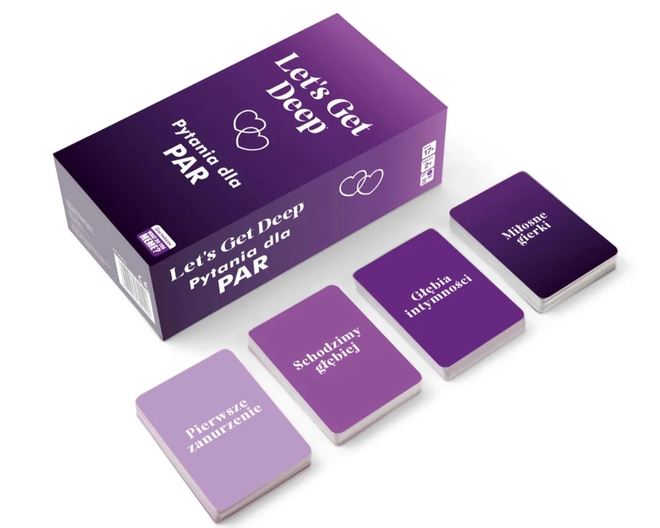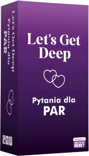 Το Let's Get Deep είναι ιδανική επιλογή για ζευγάρια που θέλουν να δώσουν «πιπεράτη» νότα στις κοινές τους στιγμές και παράλληλα να γνωριστούν καλύτερα. Οι κάρτες χωρίζονται σε τέσσερις κατηγορίες – Πρώτη Βουτιά, Πάμε Βαθύτερα, Βάθος Οικειότητας και Ερωτικά Παιχνίδια – και σας καθοδηγούν σταδιακά από ελαφριά θέματα σε πιο προσωπικές ερωτήσεις.