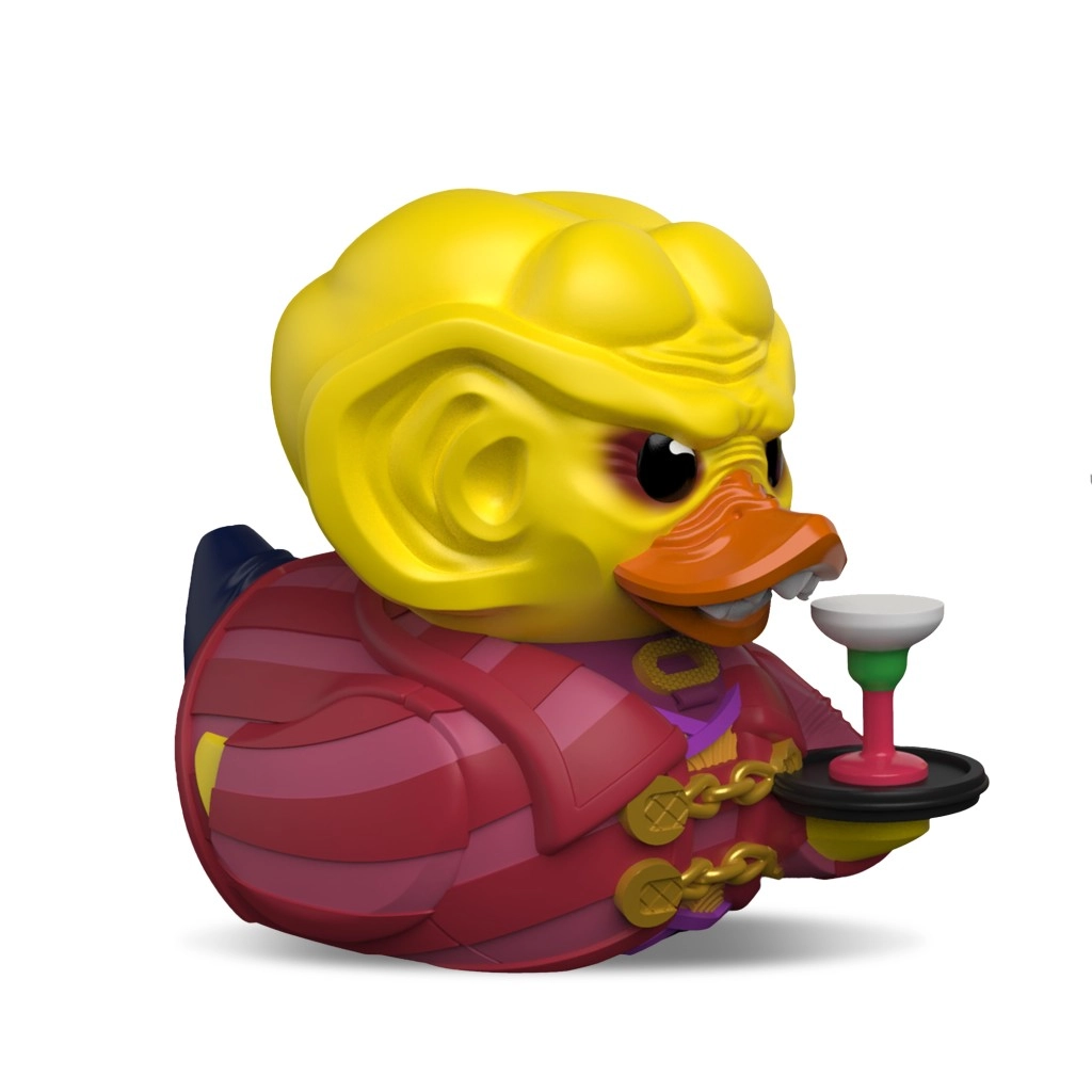 Πιστές λεπτομέρειες της στολής, χρυσές αλυσίδες και δίσκος με ποτήρι κάνουν αυτό το παπάκι ένα κομμάτι που δεν περνά απαρατήρητο για κάθε θαυμαστή.