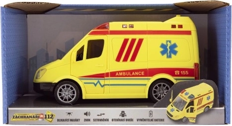 Το ασθενοφόρο είναι εξοπλισμένο με φωτεινά και ηχητικά εφέ που κάνουν το παιχνίδι ακόμα πιο ρεαλιστικό. Αυτό το μοντέλο λειτουργεί με μηχανισμό αδράνειας, εξασφαλίζοντας ομαλή κίνηση σε επίπεδη επιφάνεια.
