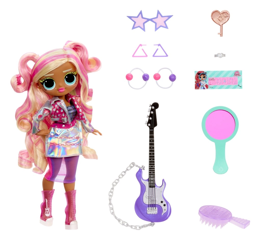 Η κούκλα έχει λεπτομερώς δουλεμένο outfit, αρθρωτά άκρα για πόζες και πλούσιο σετ αξεσουάρ, συμπεριλαμβανομένης ηλεκτρικής κιθάρας, κοσμημάτων και βούρτσας. Δύο εμφανίσεις σε μία και πάνω από 15 εκπλήξεις προσφέρουν ώρες δημιουργικού παιχνιδιού, συλλογής και έκθεσης.