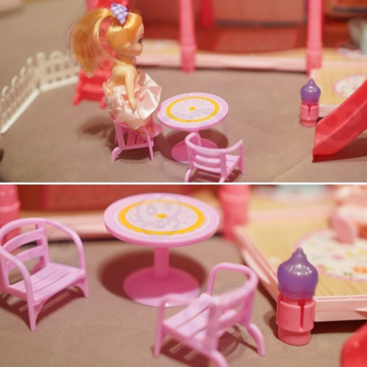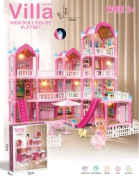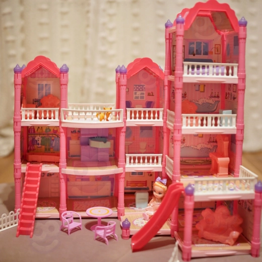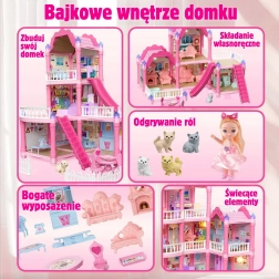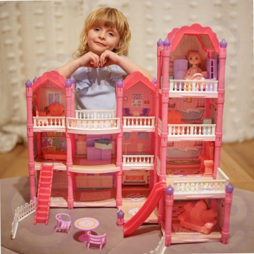 Ανακαλύψτε το μαγικό τριώροφο σπιτάκι για κούκλες με ροζ στέγη, πλούσιο εξοπλισμό και νυχτερινό φωτισμό. Το σετ προσφέρει 296 κομμάτια, συμπεριλαμβανομένων χαριτωμένων επίπλων, αξεσουάρ και κούκλας, ώστε τα παιδιά να διαμορφώνουν μόνα τους κάθε δωμάτιο. Τσουλήθρα, σκάλες και βεράντα προσθέτουν επιπλέον διασκέδαση και ενισχύουν την δημιουργικότητα, τη φαντασία και τις λεπτές κινητικές δεξιότητες.