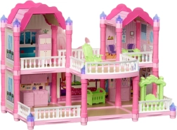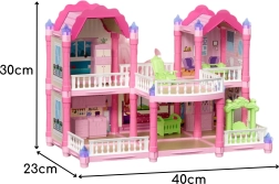 Το κουκλόσπιτο Woopie Κήπινη βίλα προσφέρει στα παιδιά παραμυθένια ατμόσφαιρα και ατελείωτες δυνατότητες παιχνιδιού. Δύο όροφοι, έξι προσεγμένα δωμάτια, βεράντα και διακοσμητικά στοιχεία συνθέτουν ένα γοητευτικό «μικρό παλάτι», που χάρη στους φωτιζόμενους πυργίσκους κυριολεκτικά λάμπει. Ο παστέλ συνδυασμός ροζ, μωβ και μέντας δημιουργεί φιλόξενο περιβάλλον για ατομικό και ομαδικό παιχνίδι.