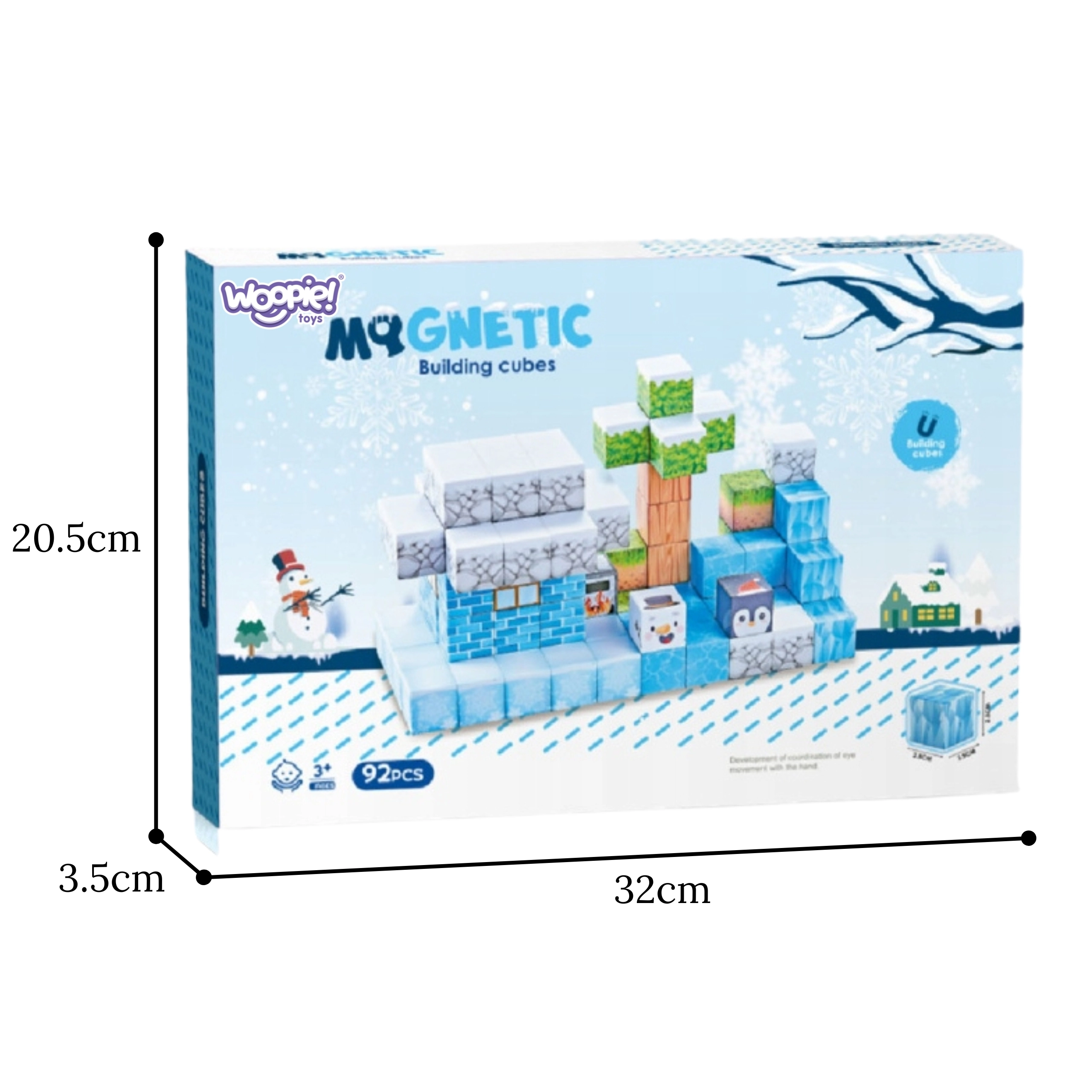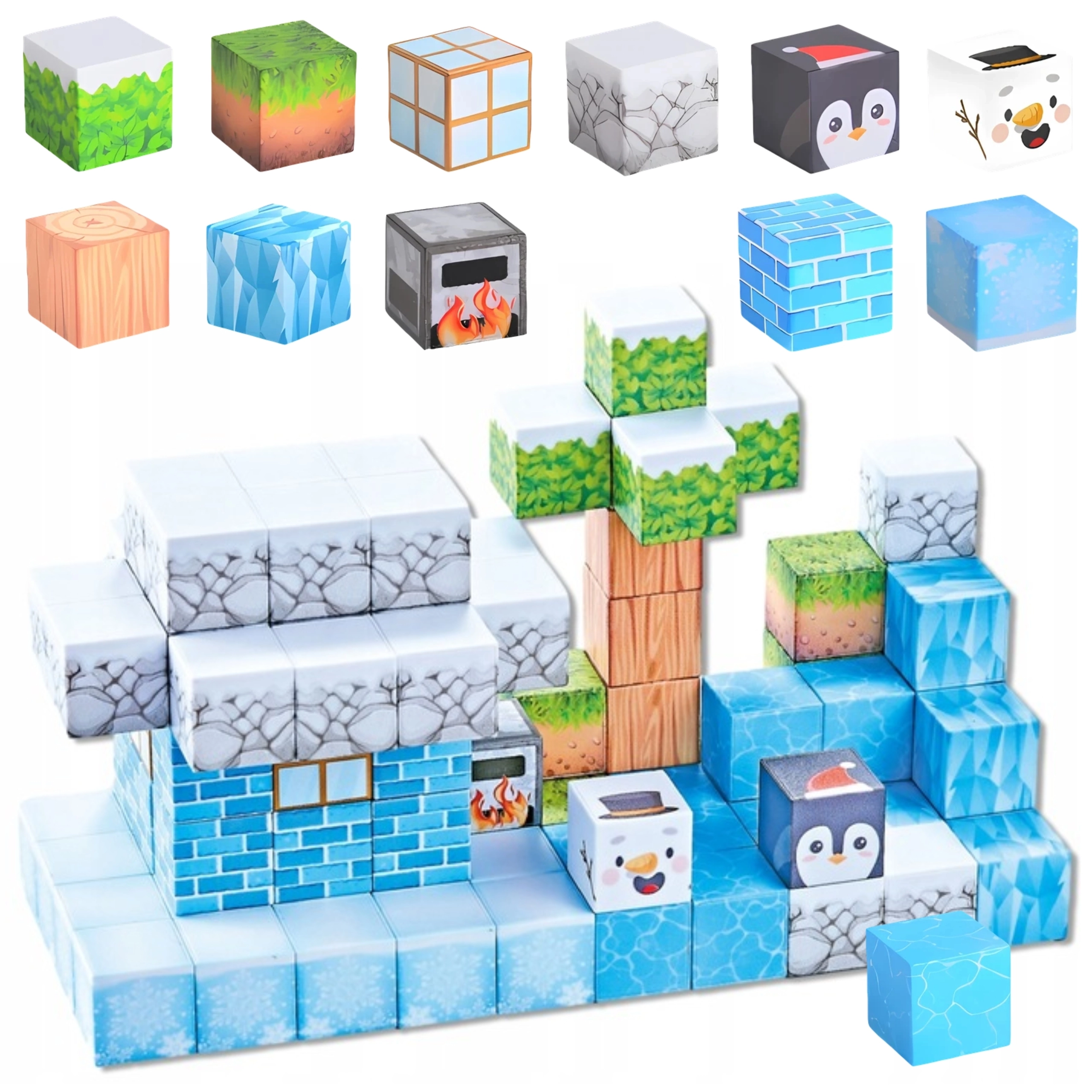 Αυτό το σετ 66 τεμαχίων σε χειμωνιάτικο στιλ θα ενθουσιάσει τους μικρούς «μηχανικούς» με πολύχρωμα μοτίβα πάγου, πέτρας, ξύλου, φύλλων και πολικών ζώων. Κάθε κομμάτι έχει διαστάσεις 2,5 × 2,5 × 2,5 cm και χάρη στους ενσωματωμένους μαγνήτες εφαρμόζει με ασφάλεια, ώστε οι κατασκευές να στέκονται χωρίς ανάγκη κόλλας ή πρόσθετων συνδέσμων.