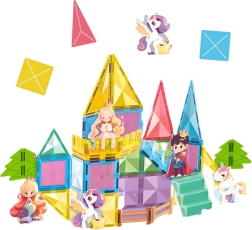 Ανακαλύψτε τη μαγεία της δημιουργίας με τις μαγνητικές τουβλίτσες WOOPIE! Αυτό το δημιουργικό σετ με 55 πολύχρωμα κομμάτια επιτρέπει στα παιδιά να χτίσουν ένα παραμυθένιο κάστρο με φιγούρες πριγκίπισσας, πρίγκιπα και μονόκερων. Οι ισχυροί μαγνήτες εξασφαλίζουν εύκολη σύνδεση, ενώ το παιχνίδι αναπτύσσει τη λεπτή κινητικότητα, τη φαντασία και την χωρική σκέψη.