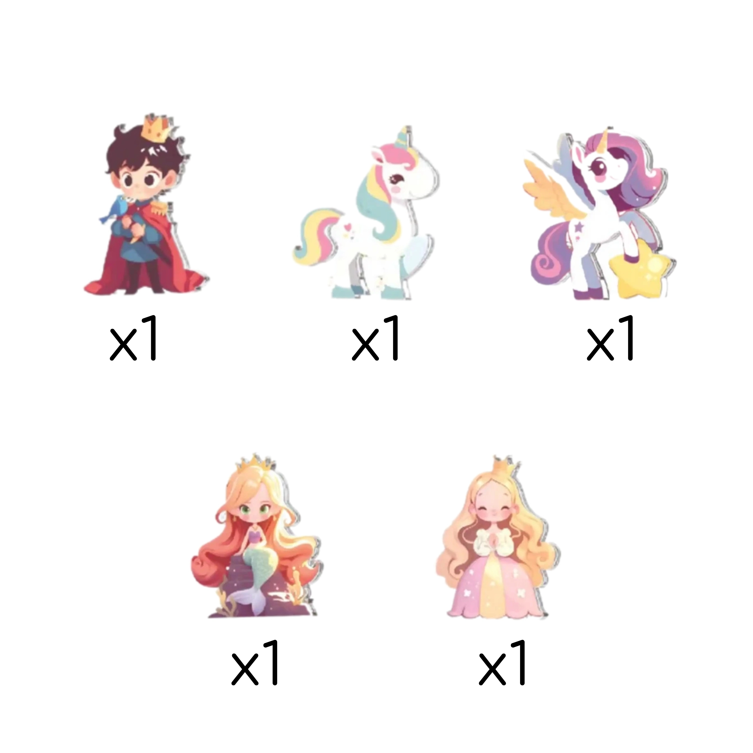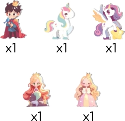 - Φιγούρες: πριγκίπισσα, πρίγκιπας και μονόκεροι