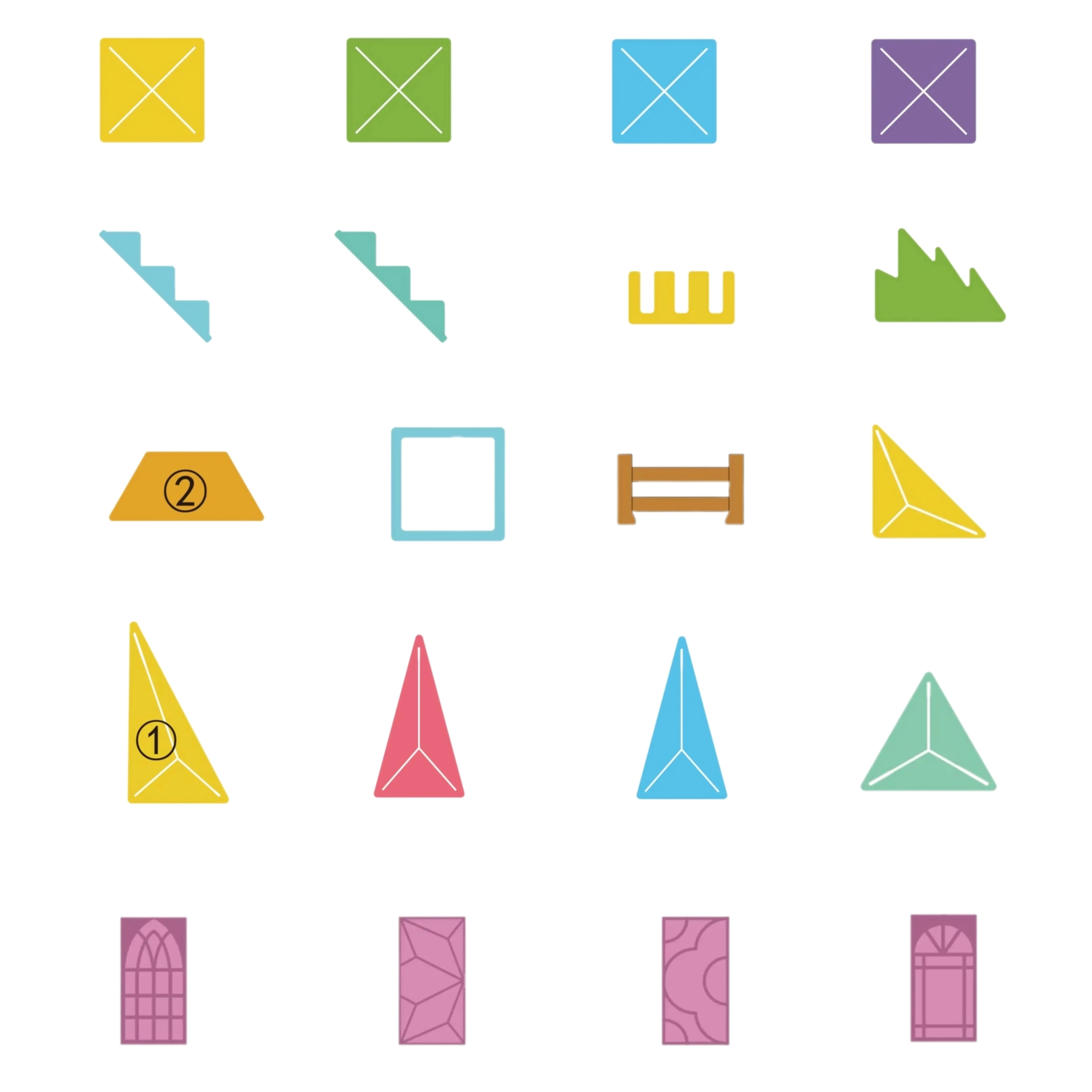 - Σκάλες, καγκελάκια, παραθυρόφυλλα (8 τμχ), φιγούρες πριγκίπισσας, πρίγκιπα και μονόκερων