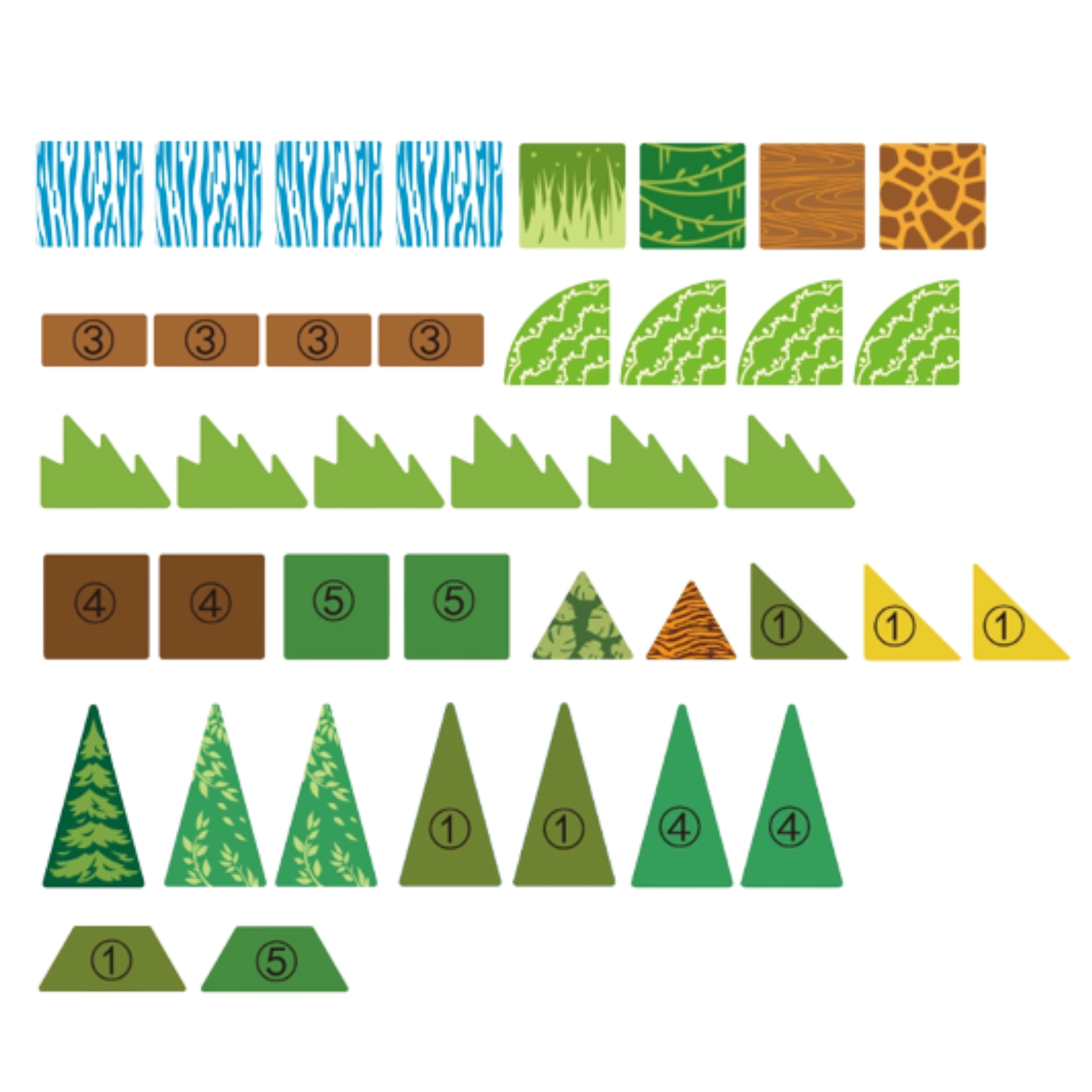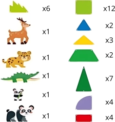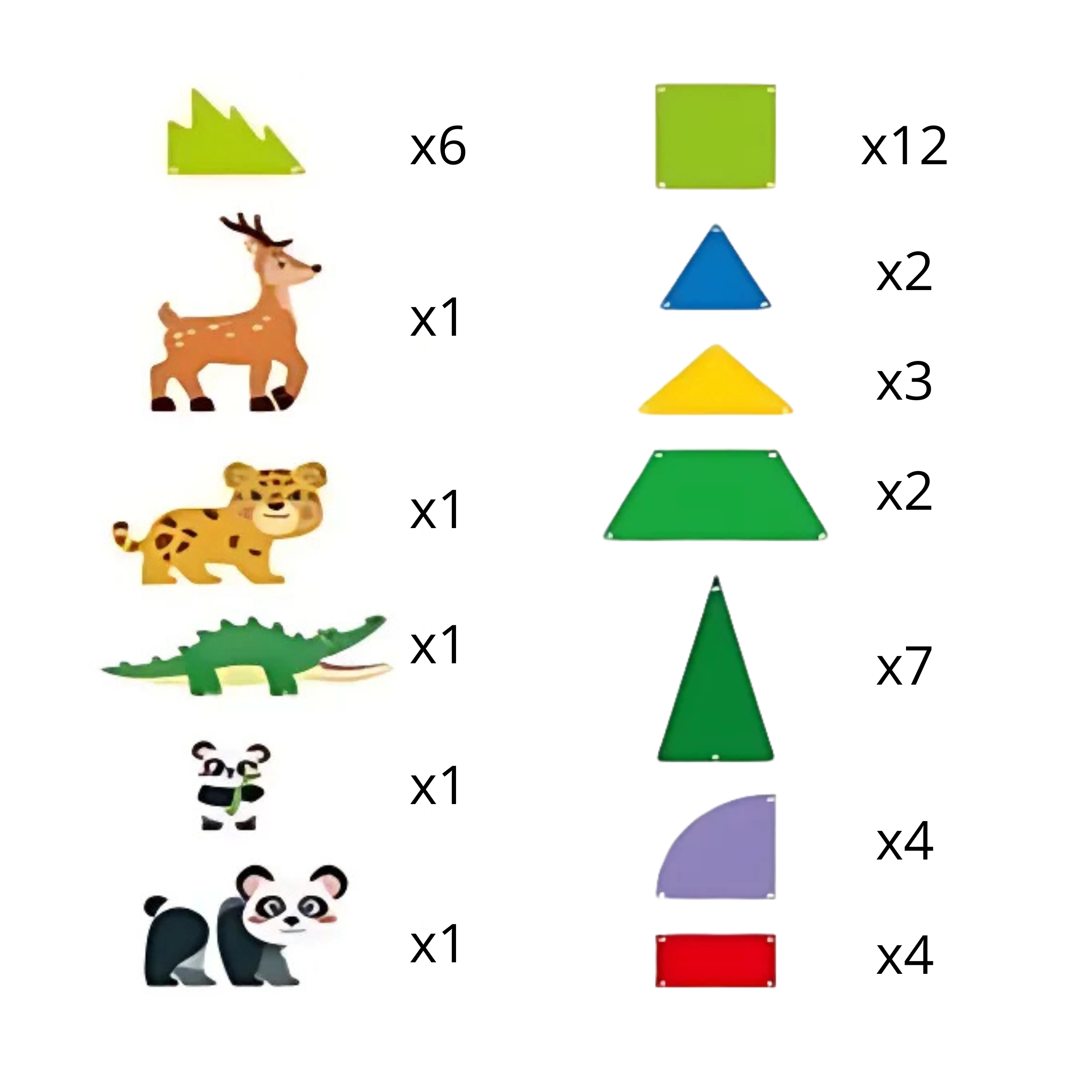 - Φιγούρες ζώων: 2× πάντα, λεοπάρδαλη, ελάφι, κροκόδειλος