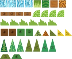 - 45 κομμάτια σε διάφορα σχήματα και χρώματα, συμπεριλαμβανομένων καταρράκτη, αψίδας, θάμνων και δέντρων
