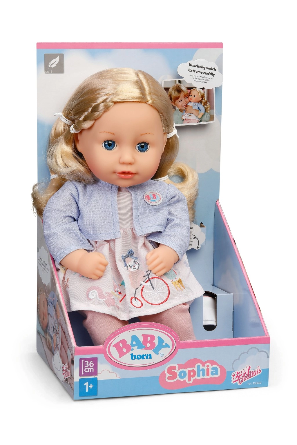 Γνωρίστε τη Σοφία – μια τρυφερή συντροφιά για καθημερινό παιχνίδι. Η κούκλα BABY born Sophia σε ροζ σύνολο γοητεύει με το μαλακό της σώμα ιδανικό για αγκαλιές, τα ρεαλιστικά μάτια που ανοιγοκλείνουν και τα πλούσια, ποιοτικά μαλλιά που προσκαλούν σε χτένισμα και δημιουργία κομμώσεων.