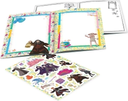 Πλούσιο σετ ειδών γραφής: μαρκαδόροι, δίχρωμα μολύβια, τζελ στυλό και τζελ μαρκαδόροι, συμπληρωμένα με τετράδιο και αυτοκόλλητα για ατελείωτη διασκέδαση.