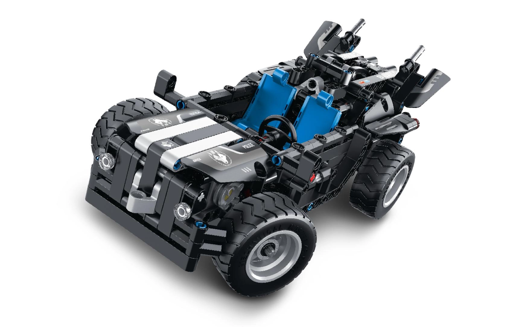 - Μοντέλο 2-σε-1 – συναρμολογείτε δύο διαφορετικές εκδόσεις εκτός δρόμου οχήματος.