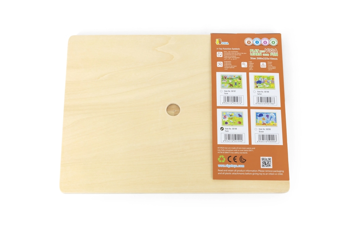 Η ξύλινη κατασκευή και οι λείες, προσεγμένα λειασμένες άκρες εξασφαλίζουν μεγάλη αντοχή και ασφαλές παιχνίδι. Ιδανικό ως το πρώτο «μεγαλύτερο» παζλ για μικρούς παζλ-λύτες – στο σπίτι και στον παιδικό σταθμό.