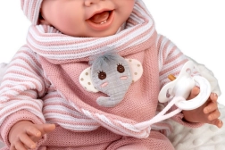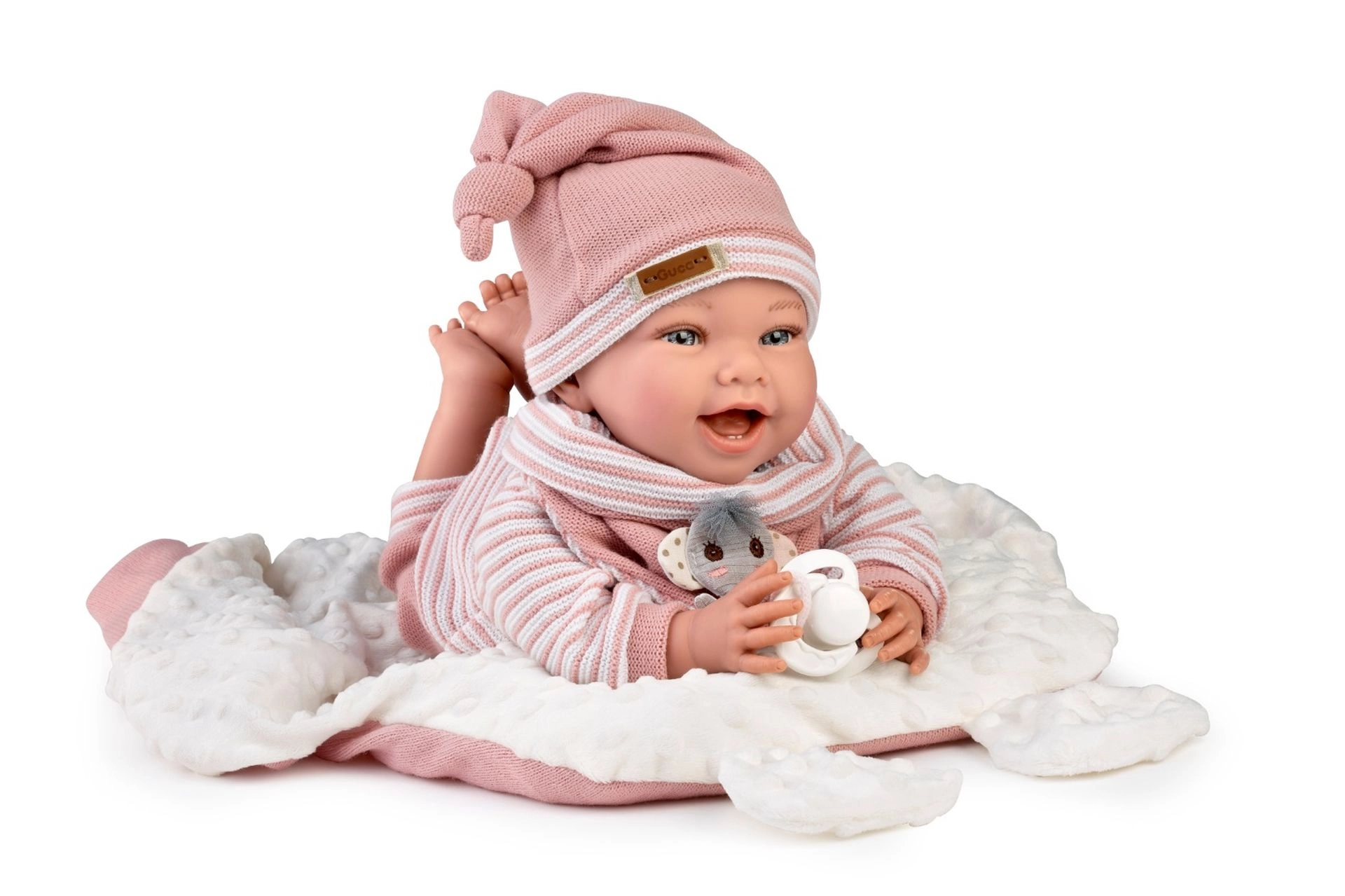 Το βαρύ γέμισμα στο κεφαλάκι και στους γλουτούς (περίπου 1 800 g) εξασφαλίζει φυσική πτώση του κεφαλιού και αυθεντική αίσθηση φροντίδας όπως σε πραγματικό μωρό.