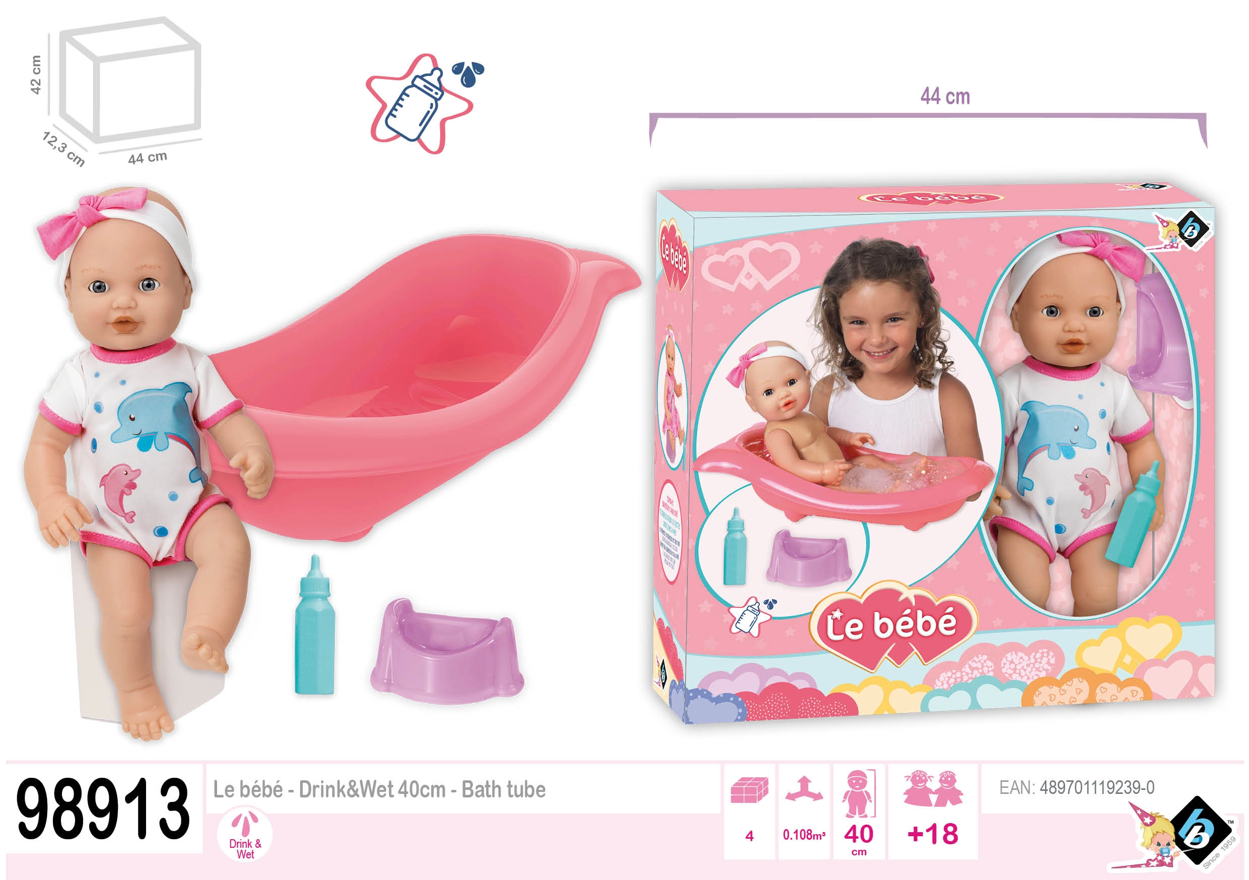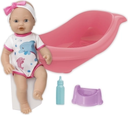 Η μικρή μπανιέρα μήκους 41 εκ. προσφέρει άπλετο χώρο για τα τελετουργικά του μπάνιου. Αφού πιει από το μπιμπερό, μπορείτε να καθίσετε την κούκλα στο γιογιό και να μιμηθεί πραγματικό κατούρημα, προσφέροντας στα παιδιά αυθεντική εμπειρία και διδάσκοντάς τα βασικές αρχές υγιεινής μέσω του παιχνιδιού.