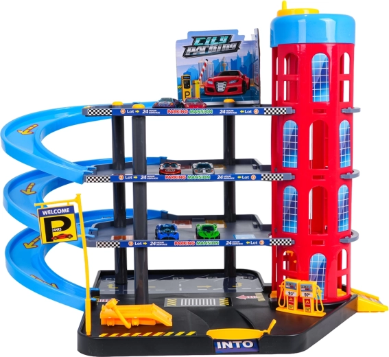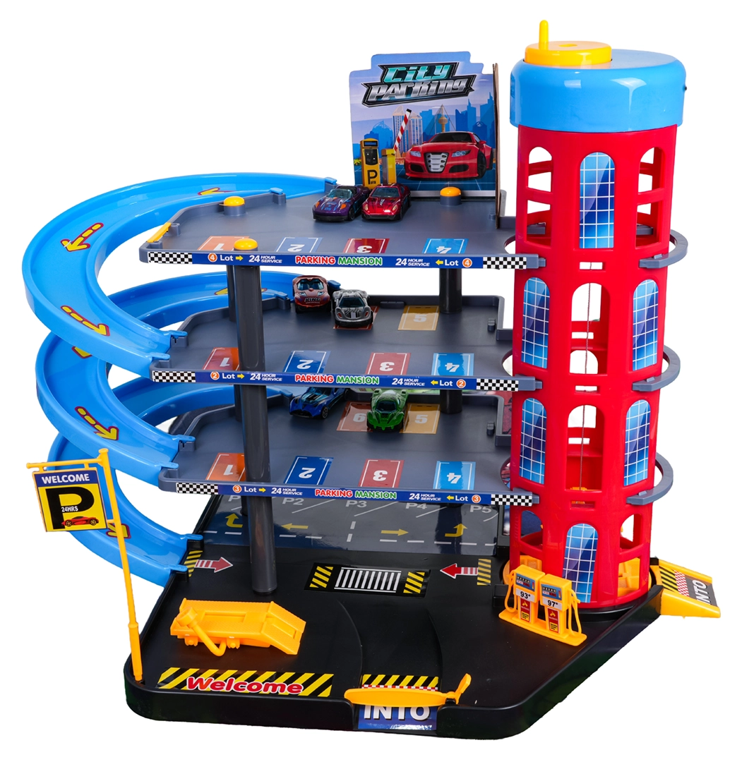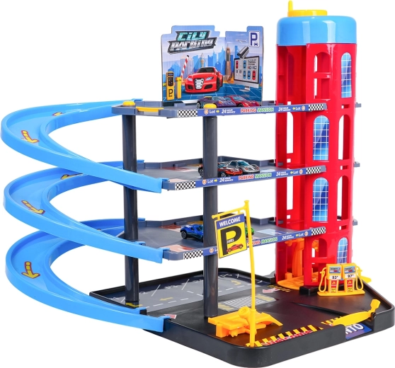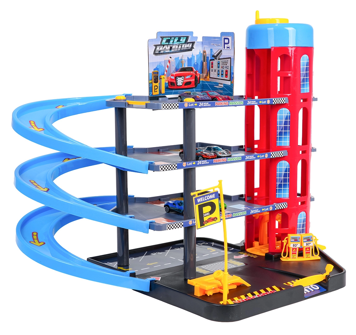 Αυτό το πολύχρωμο πολυώροφο πάρκινγκ συνδυάζει ρεαλιστικά στοιχεία πόλης με δυναμική οδήγηση. Τα παιδιά μπορούν να ανεβάζουν τα αυτοκινητάκια με το χειροκίνητο ασανσέρ, να παρκάρουν σε διαφορετικούς ορόφους και να τα αφήνουν στις σπειροειδείς ράμπες. Το ενσωματωμένο βενζινάδικο, ο ανυψωτήρας συνεργείου και η μπάρα εισόδου ενισχύουν το φανταστικό παιχνίδι.