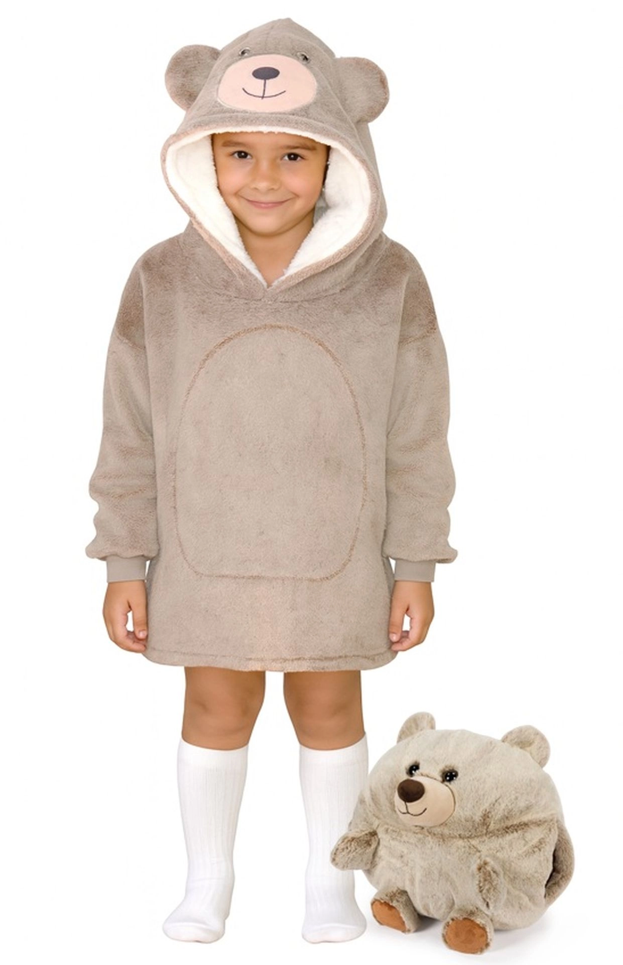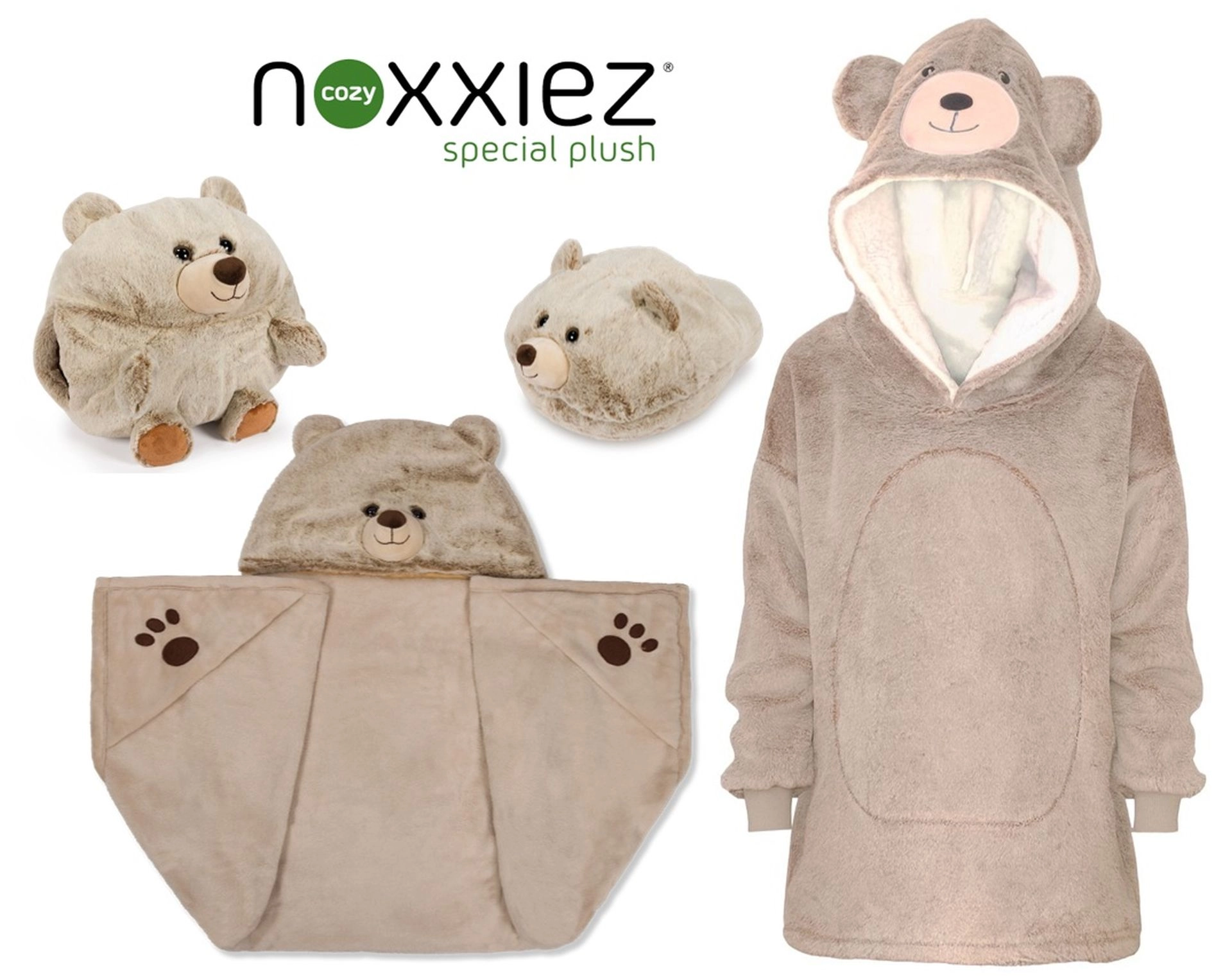 Η ζεστή κουβέρτα-φούτερ με κουκούλα Cozy Noxxiez σε σχέδιο αρκούδας μετατρέπει την ξεκούραση σε καθαρή άνεση. Μέσα ζεσταίνει αφράτο sherpa fleece, ενώ έξω χαρίζει αίσθηση έξτρα απαλού φανελένιου υφάσματος. Χάρη στην oversize γραμμή δεν μπάζει, δεν περιορίζει την κίνηση και εφαρμόζει όμορφα σε παιδιά 3 έως 6 ετών.