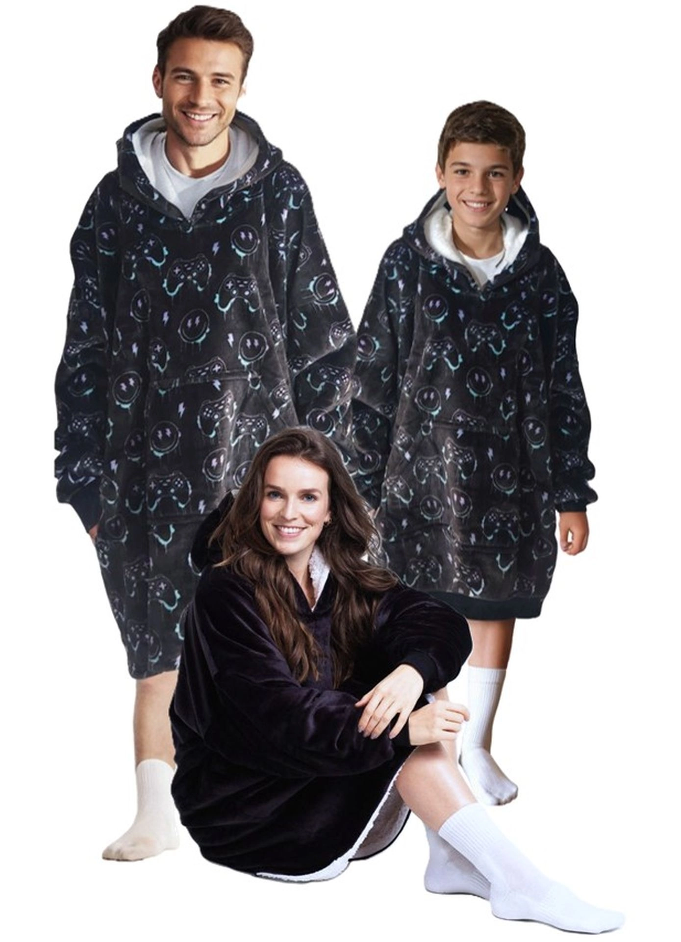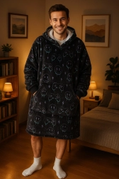 Η ζεστή κουβέρτα-φούτερ με gaming στάμπα είναι φτιαγμένη για στιγμές ξεκούρασης. Το εξωτερικό φανέλας είναι ευχάριστα απαλό στην αφή, ενώ η εσωτερική στρώση από sherpa fleece προσφέρει αφράτη ζεστασιά χωρίς περιττό βάρος. Χάρη στο καθολικό oversized κόψιμο δεν περιορίζει την κίνηση και ταιριάζει άψογα σε εφήβους και ενήλικες.