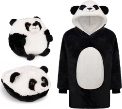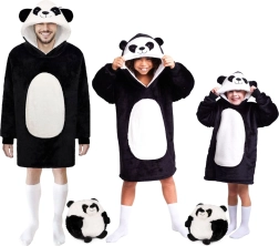 Τυλιχτείτε στη μέγιστη άνεση με την κουβέρτα-φανελάκι PANDA από την Cozy Noxxiez – ένας συνδυασμός oversize φούτερ και κουβέρτας για ολοήμερη χαλάρωση. Προσφέρει υπερβολικά μαλακό και αφράτο sherpa fleece εσωτερικά, απαλό φανελένιο ύφασμα εξωτερικά, μεγάλη κουκούλα με πάντα και ευρύχωρη μπροστινή τσέπη για τα χέρια και μικροαντικείμενα. Ιδανική για καναπέ, εργασία στον υπολογιστή, κάμπινγκ και δροσερά βράδια στη βεράντα.