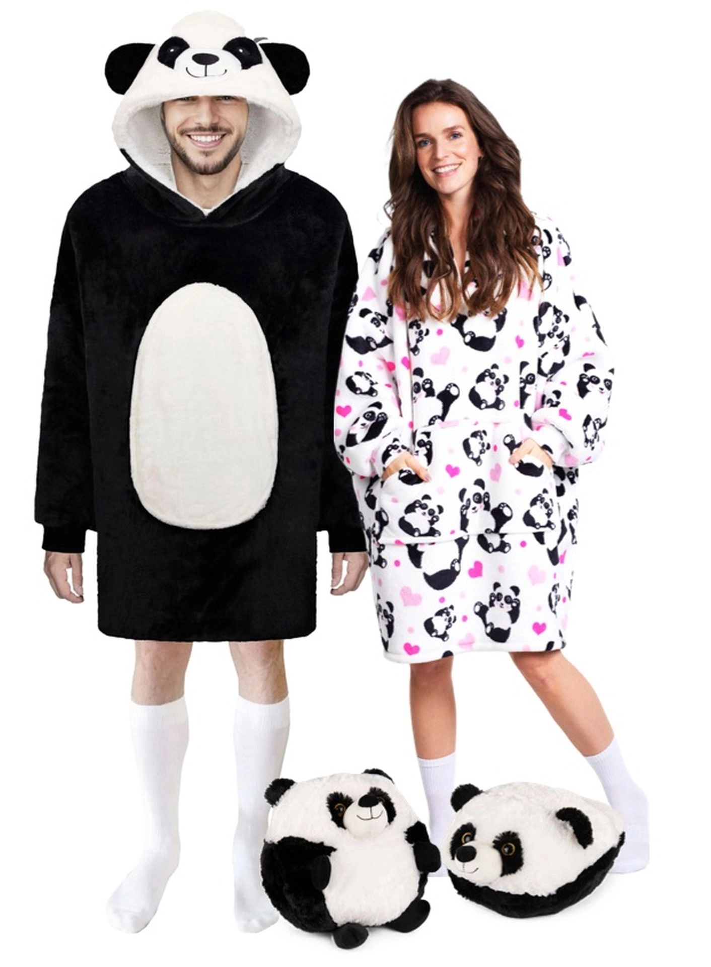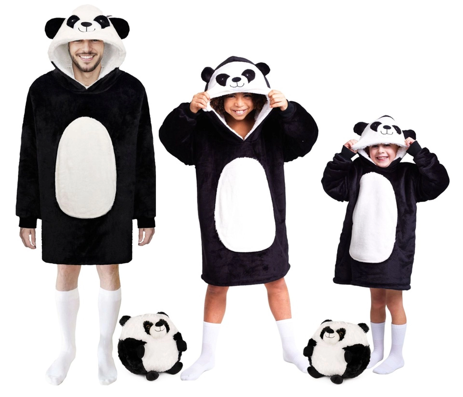 Η μεγάλη κουκούλα με μοτίβο πάντα, τα μακριά μανίκια και η χαλαρή γραμμή προσφέρουν άνεση χωρίς περιορισμό κινήσεων και ταιριάζουν τέλεια σε διαφορετικούς σωματότυπους.