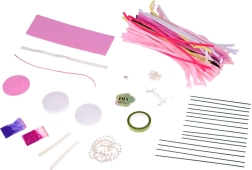 Τι περιλαμβάνει το σετ: χρωματιστά δημιουργικά συρματάκια, διακοσμητικά στοιχεία (περλίτσες, κορδέλες), χρωματιστή σκόνη, τσόχα, σφουγγαράκι, ταινία, στικ κόλλας (συμπληρωματικό – δεν είναι απαραίτητη η χρήση) και εικονογραφημένες οδηγίες.