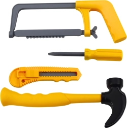 Στο σετ περιλαμβάνονται επίσης σφυρί, πριόνι, πένσα, κατσαβίδι και κλειδί, ώστε οι μικροί μαστόροι να εξασκούν τον συντονισμό, την υπομονή και τη δημιουργική σκέψη. Η ανθεκτική βαλίτσα κρατά όλα τα κομμάτια τακτοποιημένα και διευκολύνει την αποθήκευση και τη μεταφορά στο σπίτι και στα ταξίδια.