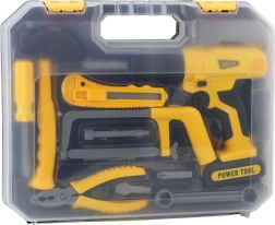 Ενισχύστε τη φαντασία και τις δεξιότητες του παιδιού σας με ένα πλήρες σετ για παιχνίδι επισκευαστή. Στο επίκεντρο βρίσκεται το τρυπάνι/κατσαβίδι με μπαταρίες με LED φως και ήχο, το οποίο χάρη στα εναλλάξιμα εξαρτήματα μιμείται τα πραγματικά εργαλεία. Όλα είναι από ανθεκτικό και ελαφρύ πλαστικό, ιδανικό για ασφαλές παιδικό παιχνίδι.