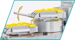 Περιστρεφόμενοι πυργίσκοι πυροβολικού με ρυθμιζόμενες κάννες, κινούμενες έλικες και πηδάλια προσδίδουν δυναμισμό και διαδραστικότητα στο μοντέλο.