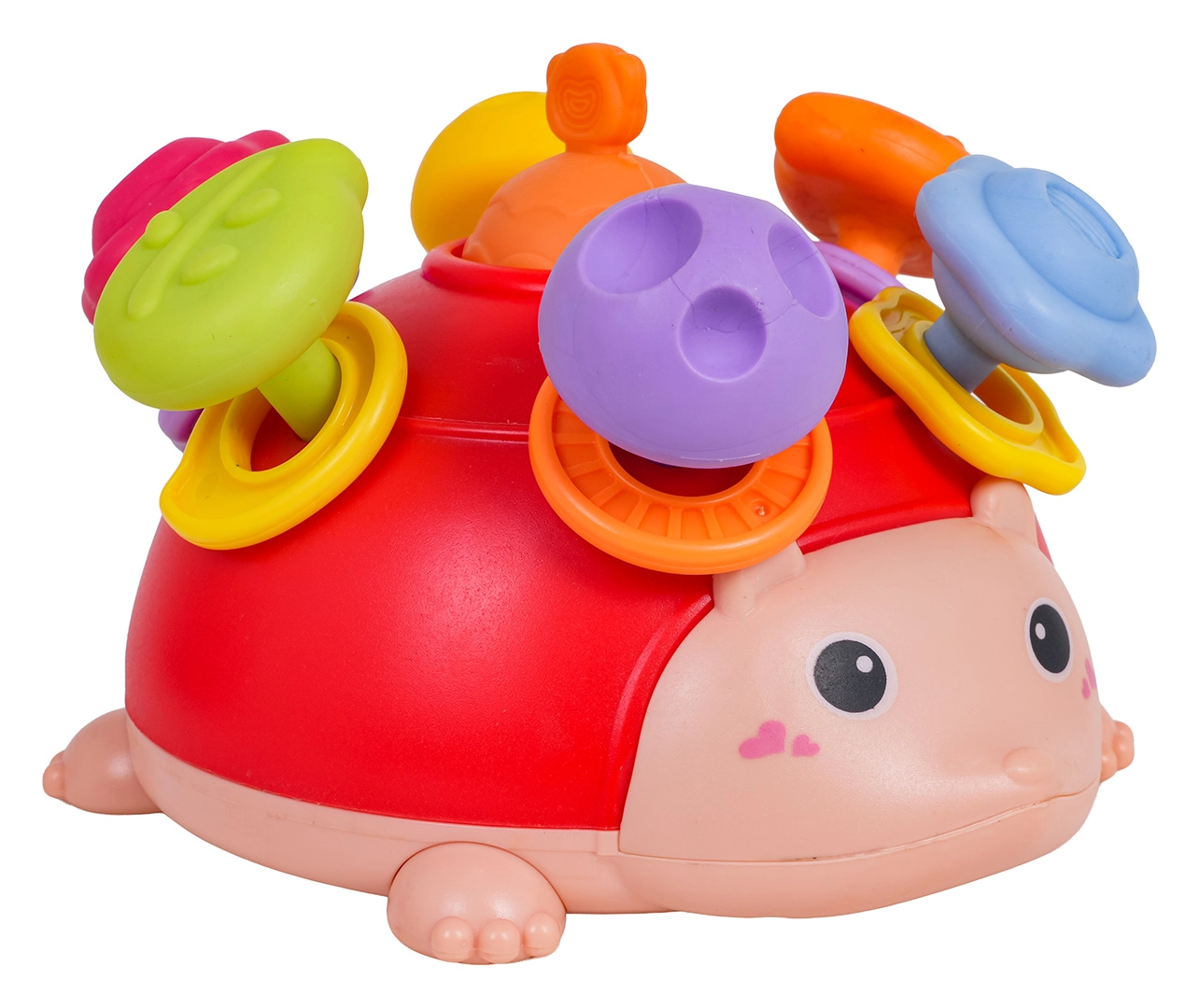 Χάρη στον προσεγμένο σχεδιασμό χωρίς αιχμηρές άκρες και τα ασφαλή υλικά, το παιχνίδι είναι ιδανικό για καθημερινό παιχνίδι στο σπίτι και στις βόλτες. Ο χαρούμενος, πολύχρωμος σχεδιασμός με τη γλυκιά φατσούλα παρακινεί τα παιδιά σε αυτόνομη δραστηριότητα και ενισχύει τα δαχτυλάκια και τη λαβή.