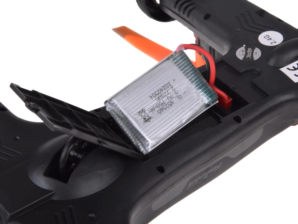 - drone/αυτοκίνητο 2‑σε‑1, χειριστήριο, συσσωρευτής, καλώδιο USB, κατσαβίδι, 2× ανταλλακτικές έλικες