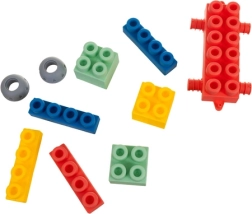 Τα πολύχρωμα κομμάτια με έντονες προεξοχές κρατιούνται και συνδέονται εύκολα. Τα παιδιά εξασκούν τη λεπτή κινητικότητα, τον συντονισμό χεριού–ματιού και καλλιεργούν τη φαντασία.