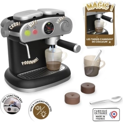 Προσκαλέστε τα παιδιά στον κόσμο της μυρωδάτης καφετέριας με την κομψή παιδική μηχανή εσπρέσο που μοιάζει και λειτουργεί σαν αληθινή. Τα ρεαλιστικά φωτεινά και ηχητικά εφέ ενισχύουν τη φαντασία και αναπτύσσουν κοινωνικές δεξιότητες μέσα από το παιχνίδι. Τα μαγικά φλιτζάνια που αλλάζουν χρώμα με την επαφή με κρύο νερό προσθέτουν σε κάθε “σερβίρισμα” ένα διασκεδαστικό σόου.