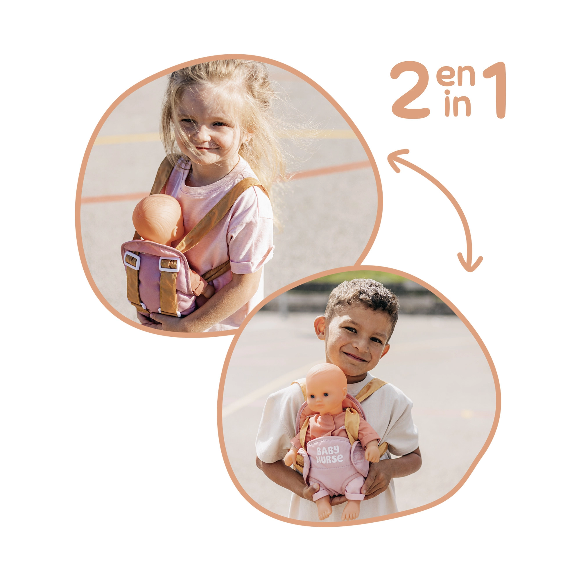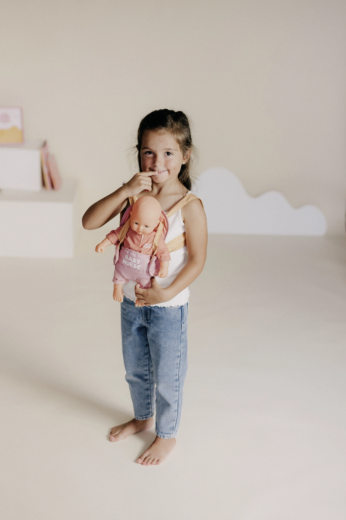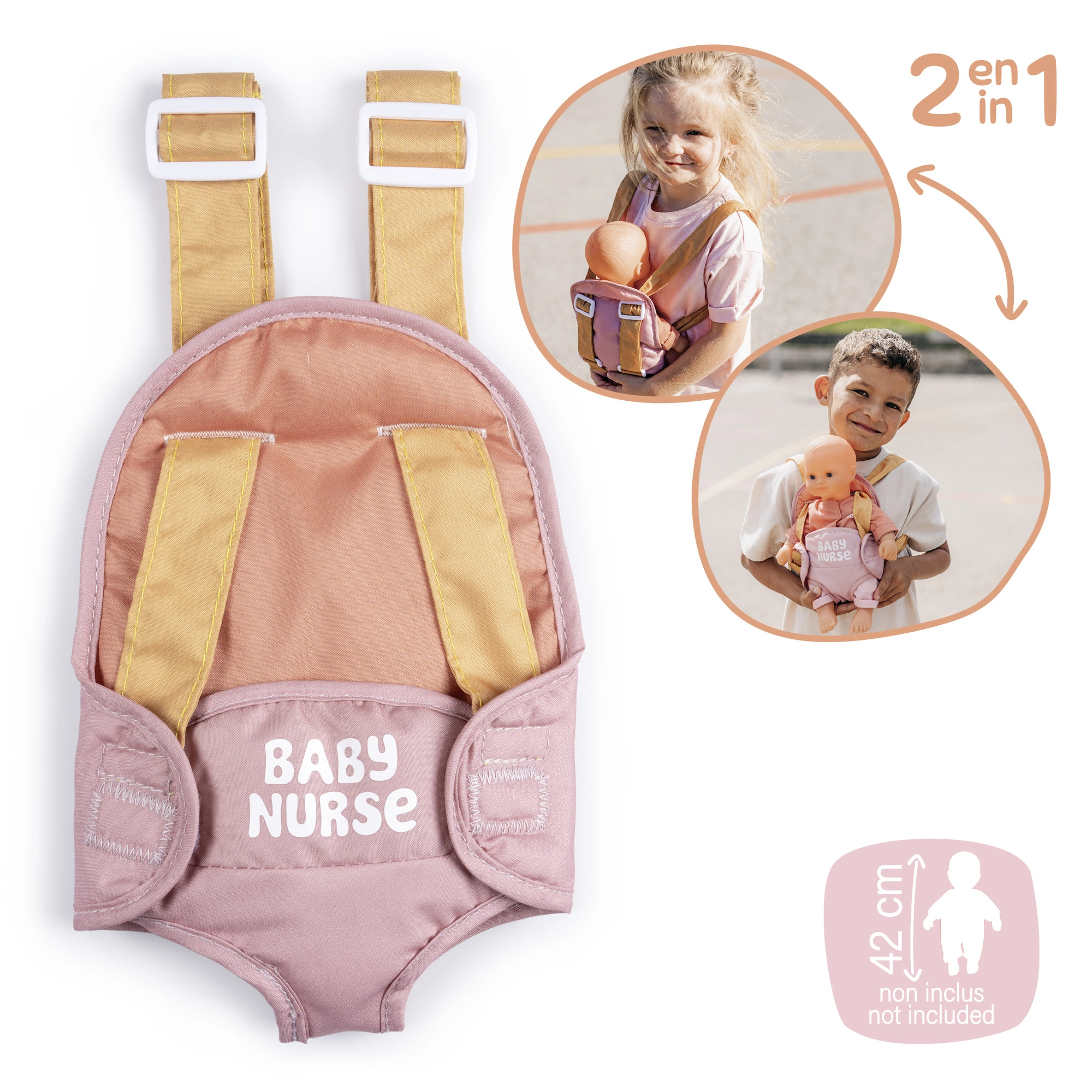 Ο μάρσιπος προσαρμόζεται εύκολα στη σωματοδομή του παιδιού χάρη στους ρυθμιζόμενους ιμάντες. Ο παστέλ συνδυασμός ροζ και ώχρας αποπνέει απαλότητα και μοντέρνο στυλ, συμπληρώνοντας τέλεια τον εξοπλισμό BABY NURSE για κούκλες.